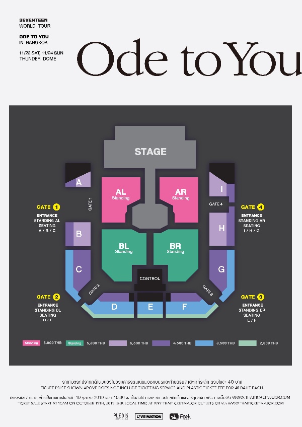 แต่ก่อนจะถึงวันจริง ผู้จัด เฟโอห์ จำกัด (Feoh Co.,Ltd.) ขอชาวกะรัตไทยวอร์มนิ้วให้พร้อม เตรียมนับถอยหลังกับดีเดย์วันขายบัตรกันก่อน!!! มาร์คไว้ที่ปฏิทินกันให้ถูกวัน วันเสาร์ที่ 19 ตุลาคม 2562 เรามีนัดลงสนามประลองความไวกันแน่นอน บัตรราคา 5800 (Standing) / 5300 (Standing) / 5500 (Seating) / 4500 (Seating) / 3500 (Seating) / 2500 (Seating) บัตรจะเปิดจำหน่ายทาง www.thaiticketmajor.com ผังที่นั่งคลอบคลุมทุกวิว กะรัตไทยได้เห็นหนุ่มๆ ทั้ง 13 ชัดเจนแน่นอน แถมสิทธิพิเศษก็เริ่ดเลอเพอร์เฟคขนาดนี้ อดใจกันไหวหรอ และเพื่อไม่พลาดทุกข้อมูลอัพเดต ติดตามรายละเอียดเพิ่มเติมได้ทาง https://www.facebook.com/FeohThai และ Twitter @FeohThai วอร์มเอเนอจี้ของคุณให้พร้อม ซ้อมแฟนชานจ์ให้แม่น แล้วมาฟินกับคอนเสิร์ตใหญ่ของพวกเขา SEVENTEEN