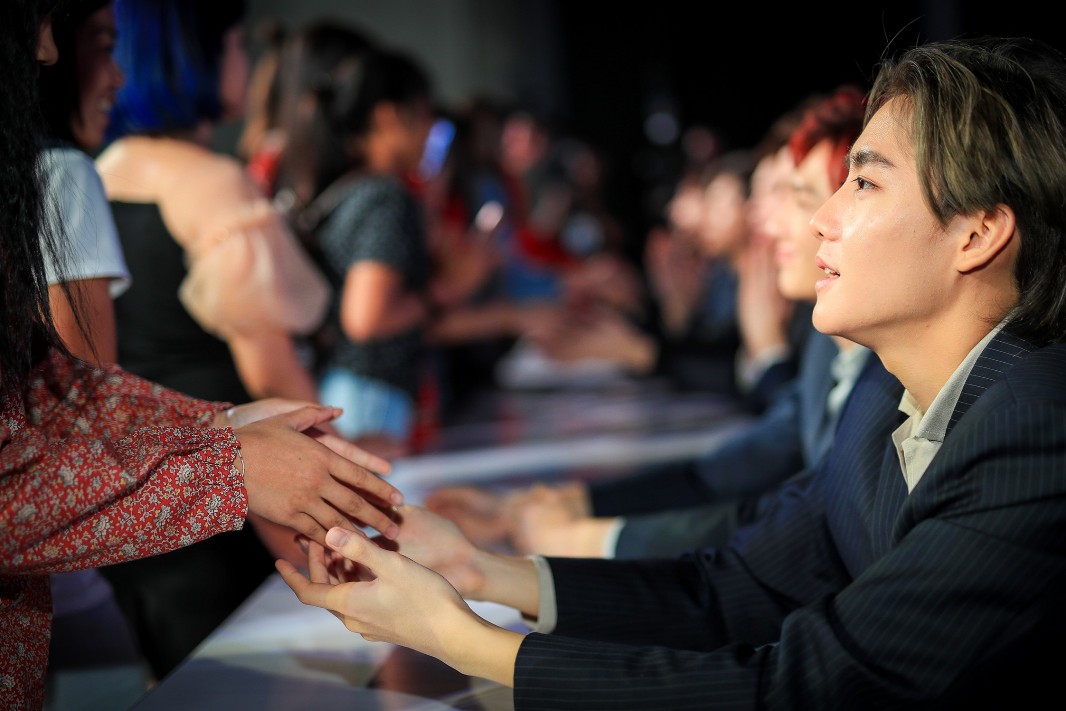 งานนี้แฟนๆ กรี๊ดตั้งแต่บนเวทียังไม่เริ่ม และทันทีที่หนุ่มๆ ปรากฏตัวพลังเสียงของแฟนๆ ก็ยิ่งดังสนั่นขึ้นไปอีก เพราะ 7 หนุ่มเปิดตัวจากด้านหลังฮอลล์ เดินทักทายแฟนคลับอย่างใกล้ชิ ดจนขึ้นเวที จากนั้นเข้าสู่ช่วงที่พิธีกรยิ งคำถามสุดเอ็กซ์คลูซีฟซึ่งหนุ่ มๆ ก็ตอบแบบหยิกแกมหยอกกันอย่างน่ ารัก พร้อมคลิปวีดิโอประกอบที่ฟินดู ดดื่ม เท่านั้นยังไม่พอเกมส์ที่เล่ นบนเวทียังชวนให้จิ้นกันไปใหญ่ งานนี้เขินกันทั้งศิลปินและคนดู กันเลยทีเดียว