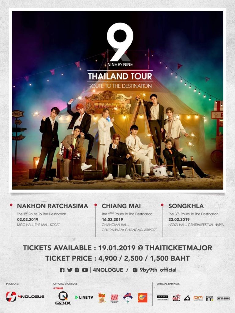 นาทีนี้คงไม่มีใครปังเท่าหนุ่มๆ9×9 (ไนน์ บาย นาย) โปรเจคพิเศษโดย 4NOLOGUE (โฟร์โนล็อค) นำโดย “ต่อ-ธนภพ, เจเจ-กฤษณภูมิ,เจมส์-ธีรดนย์, กัปตัน-ชลธร,เติร์ด-ลภัส, ปอร์เช่-ศิวกร, ไอซ์-พาริส, แจ๊คกี้-จักริน” และ “ริว-วชิรวิชญ์” ที่เตรียมตัวขึ้นคอนเสิร์ต9×9 THAILAND TOUR : ROUTE TO THE DESTINATION ทั้ง 3 รอบ3 ภาค งานนี้หนุ่มๆ อ้อนขอกำลังใจ อยากให้ NIGHT (ชื่อแฟนคลับ) ให้ไปให้กำลังใจกันเยอะๆ