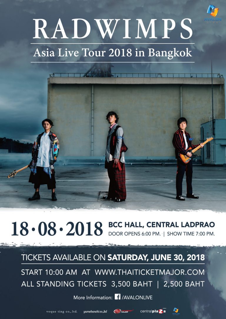 “AVALON LIVE” การันตีความมัน “RADWIMPS Asia Live Tour 2018 in Bangkok” พร้อมขายบัตร 30 มิ.ย.นี้ ทั่วประเทศ Music News “AVALON LIVE” การันตีความมัน “RADWIMPS Asia Live Tour 2018 in Bangkok” พร้อมขายบัตร 30 มิ.ย.นี้ ทั่วประเทศ Jan 01 มิถุนายน 2018 หลังจากประกาศข่าวด Read More Read more about “AVALON LIVE” การันตีความมัน “RADWIMPS Asia Live Tour 2018 in Bangkok” พร้อมขายบัตร 30 มิ.ย.นี้ ทั่วประเทศ