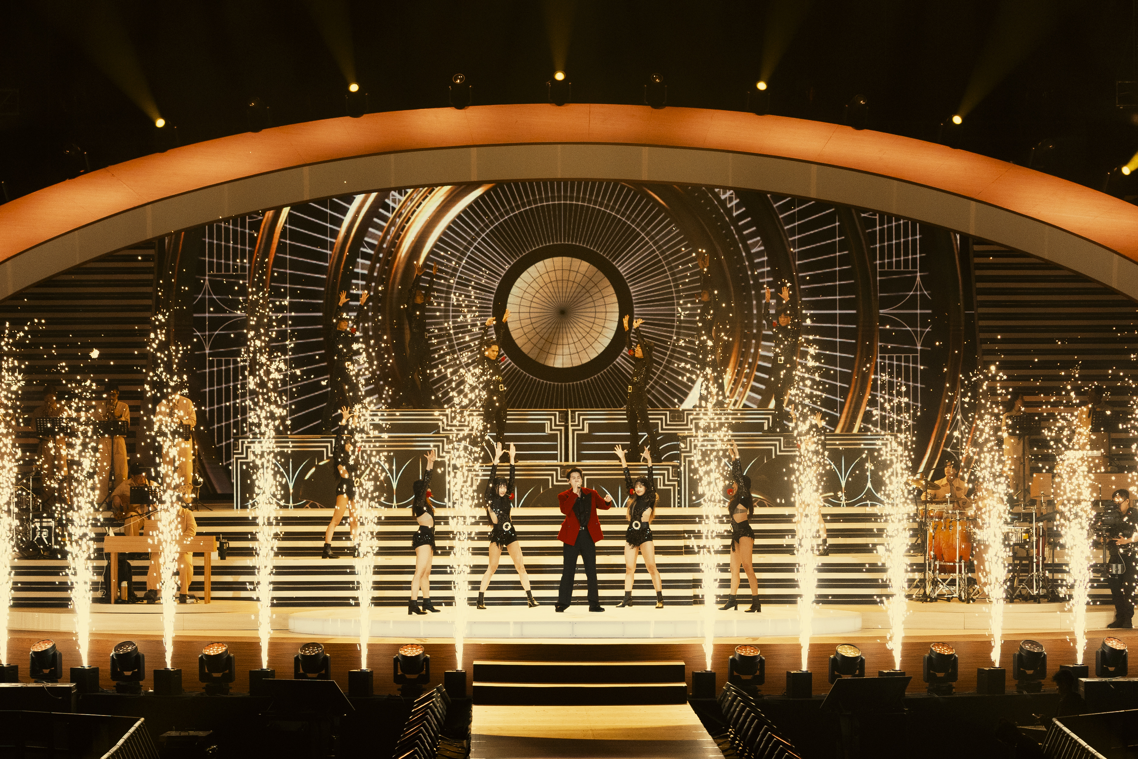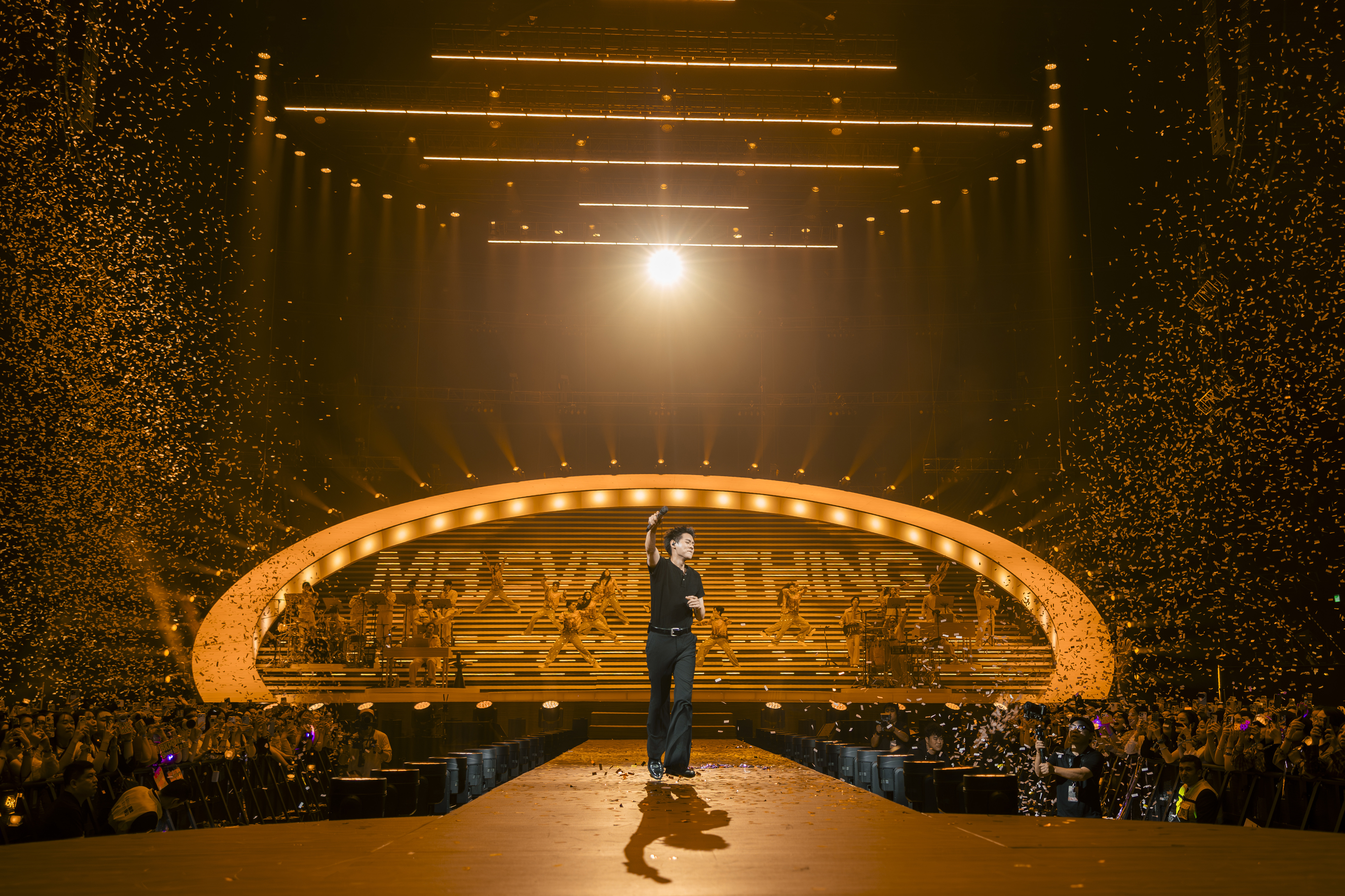 จากนั้น บิวกิ้น นำพาทุกคนเข้าสู่ช่วงสุดพิเศษ กับโชว์ที่ผ่านการเรียบเรียงดนตรีใหม่และเสียงบรรเลงจากวงเครื่องสายที่ช่วยขยายความรู้สึกของทุกบทเพลงให้ชัดขึ้น เริ่มจาก ‘การเดินทางที่สวยงาม (A Beautiful Ride)’ เข้าสู่โมเมนต์ที่สะกดคนดูด้วยเพลง ‘หยงหย่วน 永远 (Ever-Forever)’ นำเนื้อร้องจากเพลง ‘สวยงามเสมอ’ มาถ่ายทอดใหม่ในเวอร์ชันภาษาจีนที่ลึกซึ้งกินใจ และต่อเนื่องความอบอุ่นด้วย ‘You’re My Everything’ เพลงที่เป็นจุดเริ่มต้นสำคัญในเส้นทางศิลปิน ก่อนจะค่อย ๆ ดึงอารมณ์ให้ดำดิ่งไปกับเพลง ‘หลอกกันทั้งนั้น’ และ ‘หรูเหอ 如何 (Skyline)’ เพลงสุดซึ้งที่ทุกคนชื่นชอบ พร้อมส่งต่อความประทับใจในเพลง ‘ชอบตัวเองตอนอยู่กับเธอ (I Like Us)’ มาถึงพาร์ตสุดสร้างสีสันกับ Broadway Musical และ Jazz Big Band ที่บิวกิ้นถ่ายทอดออกมาได้อย่างมีเสน่ห์และคลาสสิก พร้อมเชื่อมเข้าสู่เพลงระดับตำนานอย่าง ‘I Just Called To Say I Love You’ และ ‘My Way’ เติมเต็มค่ำคืนนี้ให้ยิ่งอบอุ่นขึ้นไปอีกขั้น