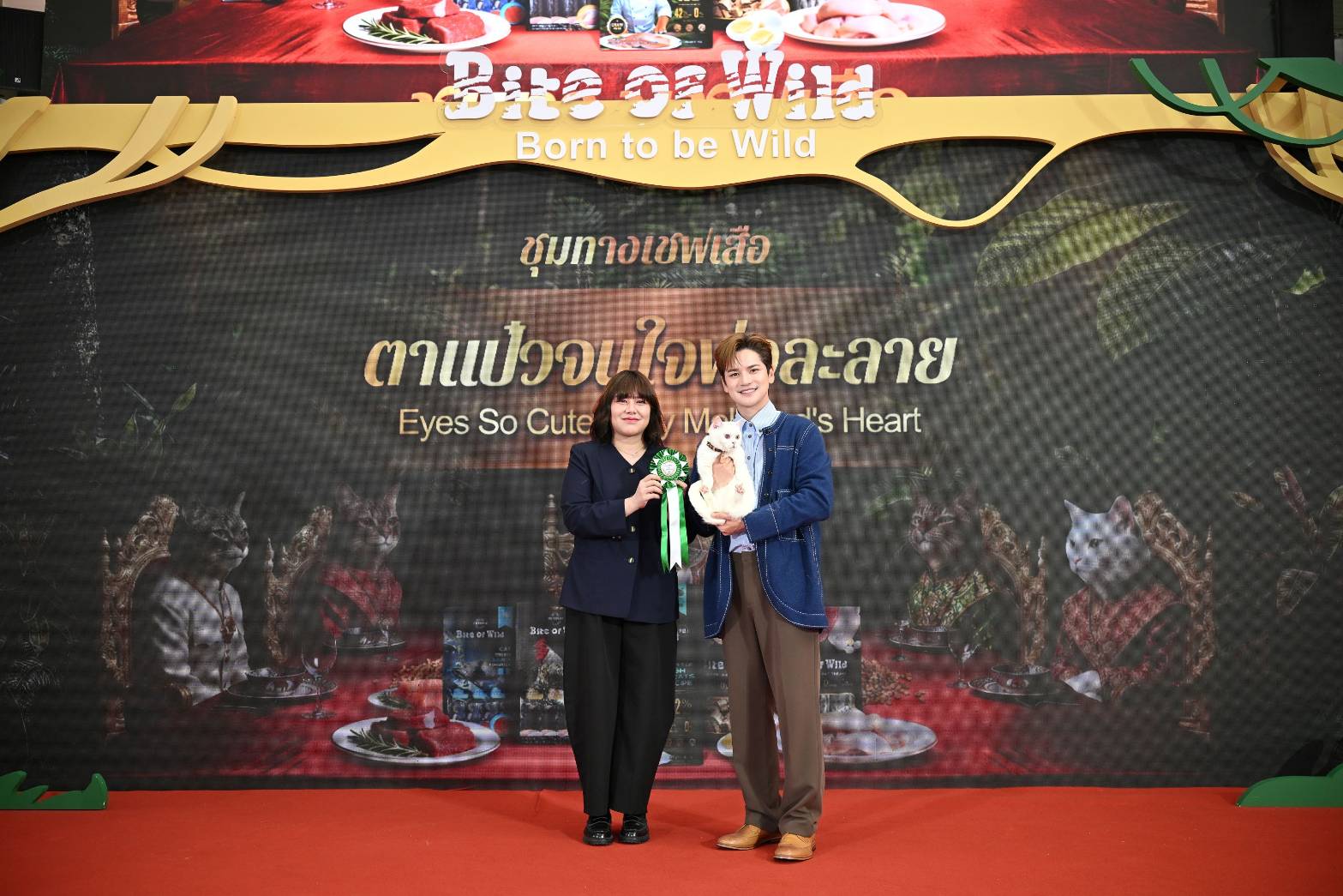 Bite of Wild “ชุมทางเชฟเสือ” นอกจากเสิร์ฟผลิตภัณฑ์อาหารแมวโฮลิสติกในระดับพรีเมียมแล้ว ยังแน่นไปด้วยกิจกรรมมากมายให้เหล่า Cat Lovers ได้พาน้องแมวมาเปิดประสบการณ์และปลุกพลังเสือให้ตื่น อาทิ กิจกรรมไฮไลท์อย่าง Cat Met Gala Red Carpetให้เหล่าน้องแมวทุกตัวได้เฉิดฉายและเปล่งประกายเสน่ห์เฉพาะตัวในแบบฉบับของตัวเอง งานประกาศรางวัล Wild MomentAwards ให้กับน้องแมวที่มีความโดดเด่นในแต่ละแบบทั้งหมด 7 รางวัล 1) รางวัลสายล่าตัวจริงแห่งพงไพร 2) รางวัลพลังล้นตังแต่เกิด 3) รางวัลเด้งดึงทะลุเพดาน 4) รางวัลมือไวสายสวบตัวตึง 5) รางวัลคํารามสะเทือนชามข้าว 6) รางวัลล่องหนจอมแฝงกายที่คัดเลือกผ่านกิจกรรมเฟ้นหาสุดยอดแมวที่ทาง Bite of Wild ให้เหล่าทาสรักส่งโมเมนต์น้องแมวเข้ามาในช่องทางออนไลน์ และรางวัลสุดท้ายรางวัลพิเศษ 7) ตาแป๋วจนใจพ่อละลายที่มอบให้ เต๋า – เศรษฐพงศ์ เพียงพอ และ น้องแฮปปี้ คู่ดูโอ้พ่อแมวกับลูกแมวตัวน้อยที่สามารถละลายหัวใจของทุกคนได้อย่างอ่อนโยนด้วยดวงตากลมโตใสซื่อ
