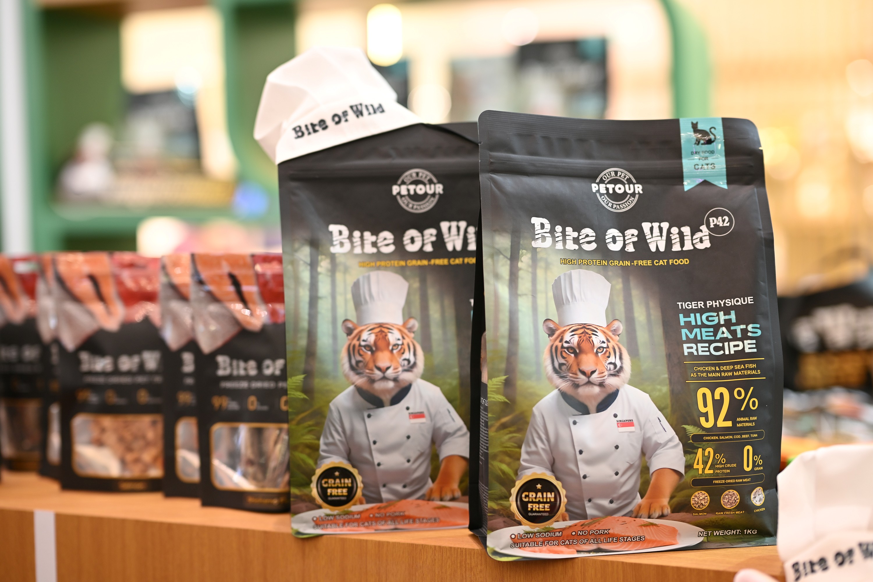 สำหรับผลิตภัณฑ์จาก Bite of Wild ผลิตจากวัตถุดิบธรรมชาติแท้ คุณภาพเยี่ยม สดใหม่ การันตีเนื้อแท้แน่นทุกคำ มีให้เหล่าทาสรักแมวได้เลือกช้อปเพื่อเสิร์ฟความพรีเมียมให้เหล่าเสือน้อยที่คุณรักแล้วในไทย ได้แก่ ผลิตภัณฑ์อาหารเม็ด (Dry Cat Food) รุ่น P42 มีส่วนผสมจากเนื้อสัตว์แท้ 92% ให้โปรตีนสูง 42% ปราศจากธัญพืช โภชนาการครบถ้วน ช่วยเสริมสร้างกล้ามเนื้อ ดูแลสุขภาพครบมวลรวมของน้องแมวทั้งระบบย่อยอาหาร ระบบภูมิคุ้มกัน ต่อต้านอนุมูลอิสระ สุขภาพลำไส้และขน นอกจากนี้ยังมีผลิตภัณฑ์ยอดนิยม ได้แก่ ผลิตภัณฑ์ฟรีซดราย (Freeze-Dried) ใช้วัตถุดิบแท้จากธรรมชาติ ปราศจากการแต่งสี แต่งกลิ่นและสารกันเสีย โปรตีนสูง คาร์โบไฮเดรตต่ำ ช่วยเสริมสร้างภูมิคุ้มกันและควบคุมน้ำหนัก และ ผลิตภัณฑ์ขนมแมวเลีย รสไก่และแซลมอนที่เนื้อแน่เต็มคำถูกใจน้องแมวทุกวัยอีกด้วย