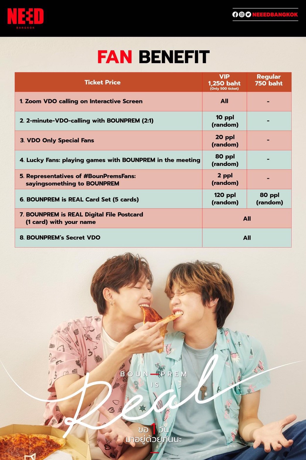 NEEED Bangkok เปิดขายบัตรอย่างเป็นทางการแล้ววันนี้ (20 มีนาคม 2564) เวลา 10.00 น. กับงาน ‘BOUNPREM is REAL ขอ 1 วันมาอยู่ด้วยกันนะ’ Virtual Live Fan Meeting ครั้งแรกของคู่จิ้นสุดฮอต #บุ๋นเปรม ที่จะชวนคุณมาอยู่ด้วยกันใน 1 วันแสนพิเศษ