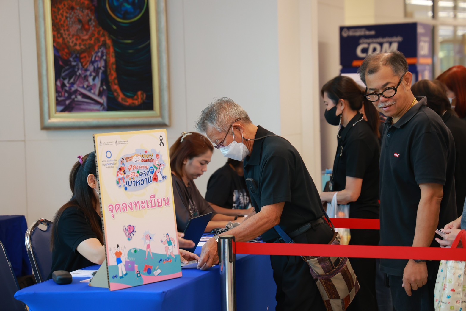 ภายในงานจัดเสวนาให้ความรู้หัวข้อ “วัยทำงาน หวานพอดี” โดย แพทย์หญิงพรทิพย์ ธีระวิทย์ แพทย์เฉพาะทางด้านอายุรศาสตร์ ต่อมไร้ท่อและเมตาบอลิก เปิดเผยว่า “โรคเบาหวาน (diabetes mellitus) เป็นโรคที่มีความผิดปกติทางเมตาบอลิซึมเรื้อรังที่มีระดับน้ำตาลในเลือดสูง เนื่องจากร่างกายขาดการสร้างอินซูลินหรือดื้อต่ออินซูลิน ซึ่งถ้าไม่ได้รักษาและควบคุมระดับน้ำตาลในเลือดจะมีภาวะแทรกซ้อนต่อหัวใจ หลอดเลือด ตา ไต และเส้นประสาทได้ ปัจจัยที่ทำให้วัยทำงานเสี่ยงการเป็นเบาหวานมากขึ้น ได้แก่ ภาวะน้ำหนักเกิน อ้วน, ขาดการออกกำลังกาย งานนั่งนาน, อายุที่เพิ่มขึ้น และพฤติกรรมเสี่ยงในที่ทำงาน เช่น ความเครียดจากงานสูง หรืองานกะกลางคืน ที่รบกวนการนอนและการทาน สำหรับปัจจัยที่ทำให้โรคเบาหวานแย่ลง คือ ผู้ป่วยบางรายอาจมีพฤติกรรมการรับประทานยาหรือฉีดอินซูลินไม่สม่ำเสมอ ขาดยา, กินอาหารไม่สม่ำเสมอ หรือติดอาหารที่มีน้ำตาลและแป้งสูง ไม่ออกกำลังกาย ความเครียดจากงานและปัญหาด้านสุขภาพจิต การดื่มแอลกอฮอล์ สูบบุหรี่ และนอนหลับไม่เพียงพอ ซึ่งการปฏิบัติตัวของเบาหวานในวัยทำงานนั้นควรทานเป็นเวลา เลือกอาหารและของว่างที่เหมาะสม ออกกำลังกาย ทานยาและตรวจน้ำตาลตามที่แพทย์แนะนำ อย่าเปลี่ยนยาหรือหยุดเอง นอกจากนี้ยังมีภาวะแทรกซ้อนที่ต้องระวังได้แก่ เบาหวานขึ้นตา ไตเสื่อม การชา ความเสียหายของเส้นประสาท นำไปสู่การสูญเสียการมองเห็น ไตวาย และแผลเรื้อรังที่เท้า หัวใจขาดเลือด โรคหลอดเลือดสมอง โรคหลอดเลือดส่วนปลาย ภาวะน้ำตาลสูงมาก และภาวะน้ำตาลต่ำ มีการติดตามป้องกัน ควบคุมระดับน้ำตาล ดูแลเท้า ตรวจตา ตรวจไตเป็นประจำ”