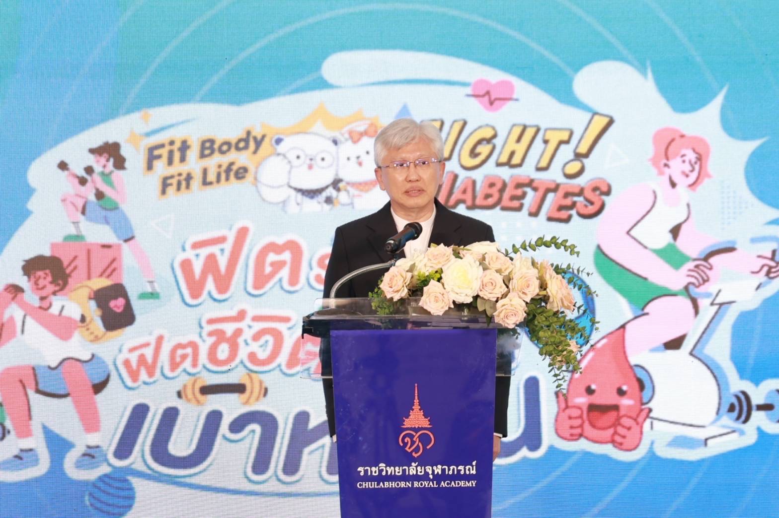 รศ.นพ.สุรศักดิ์ ลีลาอุดมลิปิ รักษาการผู้อำนวยการโรงพยาบาลจุฬาภรณ์ เปิดเผยว่า “คลินิกเบาหวานและโรคเมตาบอลิก โรงพยาบาลจุฬาภรณ์ ราชวิทยาลัยจุฬาภรณ์ ในฐานะที่เป็นหน่วยให้บริการดูแลรักษาโรคเบาหวานอย่างครบวงจร เล็งเห็นความสำคัญของการจัดกิจกรรมวันเบาหวานโลก (World Diabetes Day) ร่วมรณรงค์ส่งเสริมดูแลสุขภาพแก่ประชาชน ภายใต้แนวคิด “ฟิตร่างกาย ฟิตชีวิต พิชิตเบาหวาน” (Fit Body, Fit Life, Fight Diabetes) เพื่อให้บริการวิชาการด้านสุขภาพและร่วมดูแลรักษาสุขภาพในเชิงป้องกันโดยมุ่งหวังให้ประชาชนรู้ระดับความเสี่ยง หมั่นตรวจร่างกาย และลดพฤติกรรมเสี่ยงในชีวิตประจำวัน โดยมีเป้าหมายลดอัตราการเสียชีวิตจากโรค อีกทั้งยังสร้างความตระหนักรู้เรื่องการดูแลรักษาที่เหมาะสม ตลอดจนให้ความรู้ความเข้าใจในการช่วยเหลือผู้ป่วยโรคเบาหวานเพื่อสนับสนุนให้ระบบสุขภาพของประเทศมีความเข้มแข็ง ประชาชนสามารถเข้าถึงการรักษาที่มีคุณภาพและได้มาตรฐานอย่างเท่าเทียม ตามพระปณิธานของ ศาสตราจารย์ ดร. สมเด็จพระเจ้าน้องนางเธอ เจ้าฟ้าจุฬาภรณวลัยลักษณ์ อัครราชกุมารี กรมพระศรีสวางควัฒน วรขัตติยราชนารี องค์ประธานและนายกสภาราชวิทยาลัยจุฬาภรณ์ และองค์ประธานผู้ทรงจัดตั้งโรงพยาบาลจุฬาภรณ์”