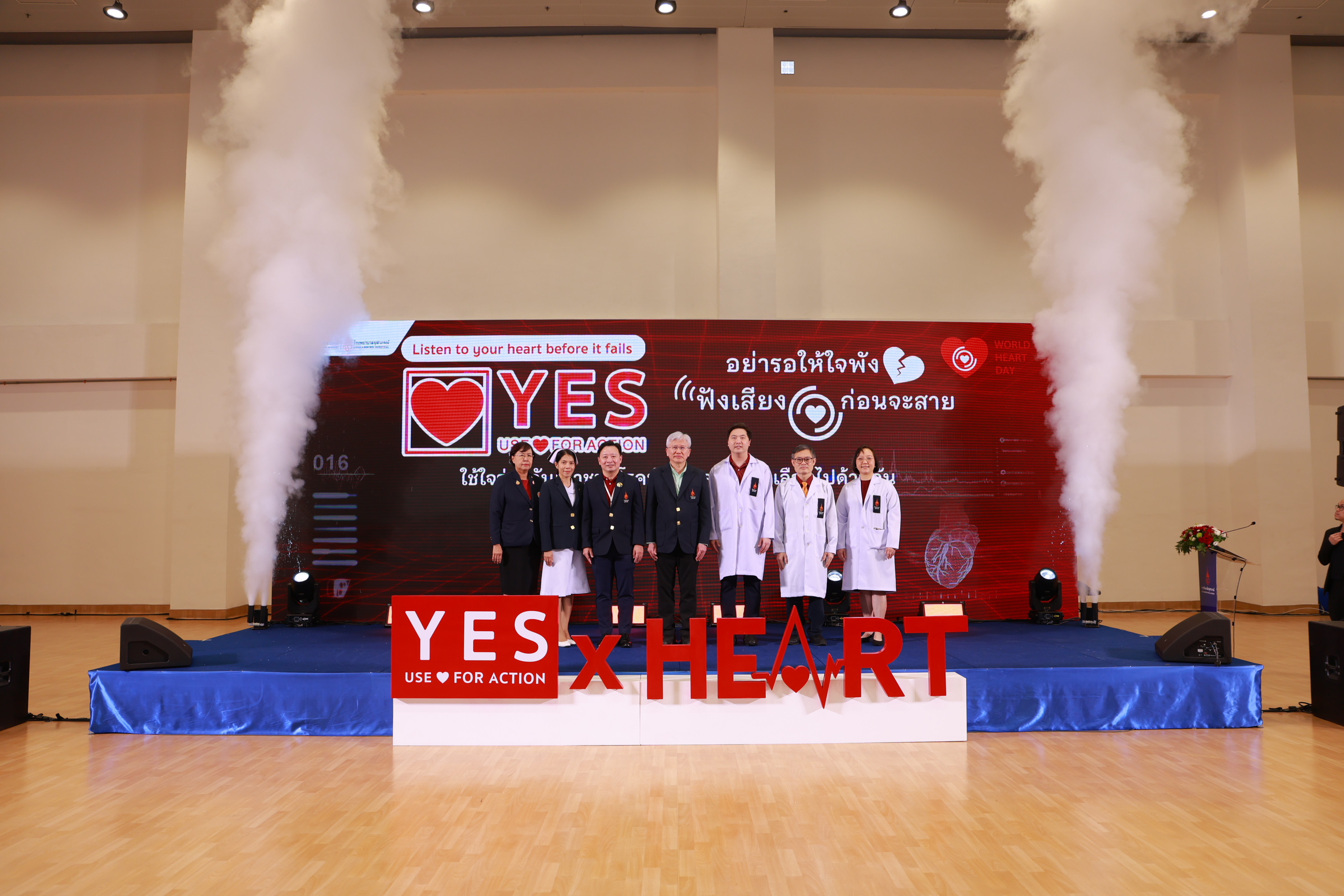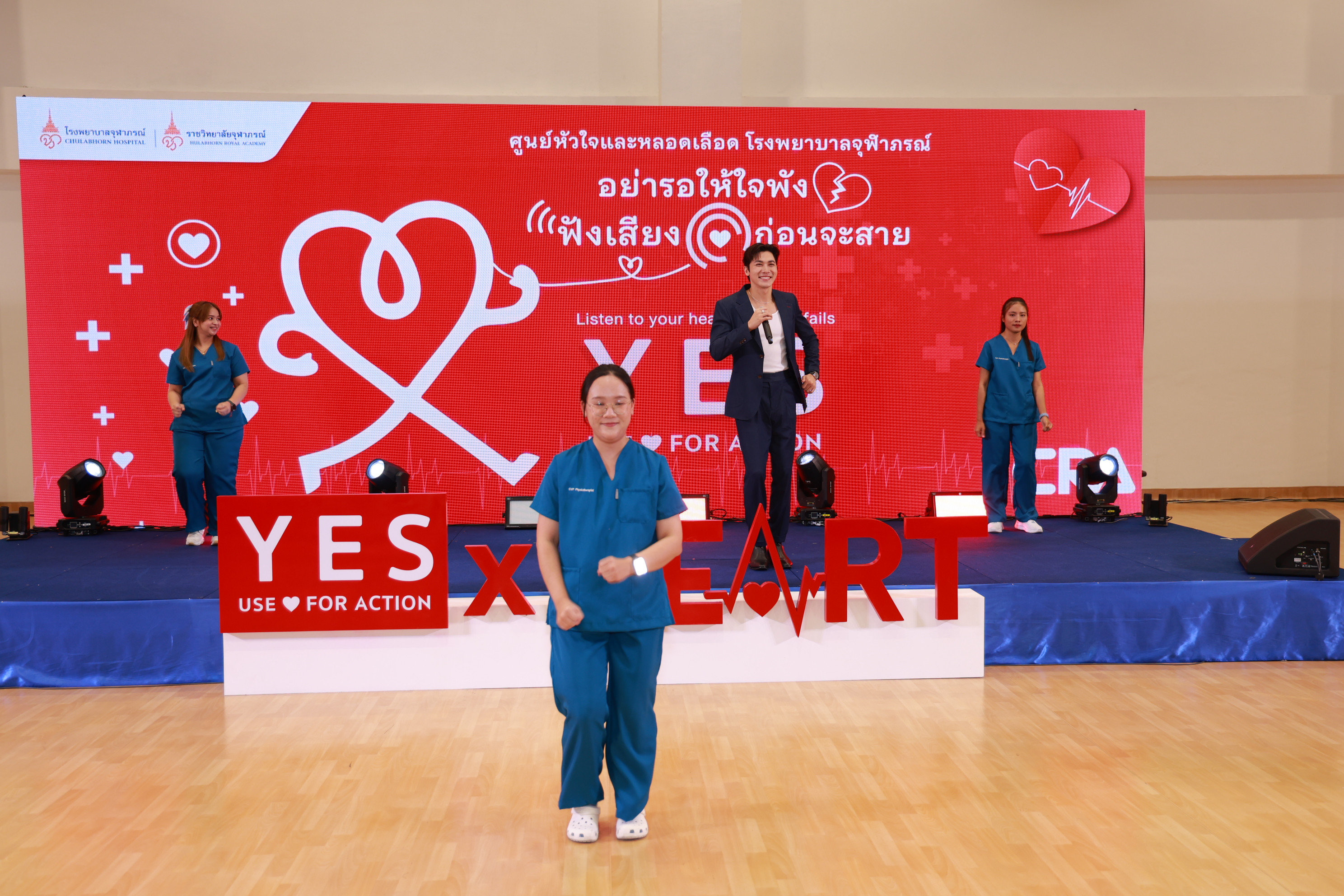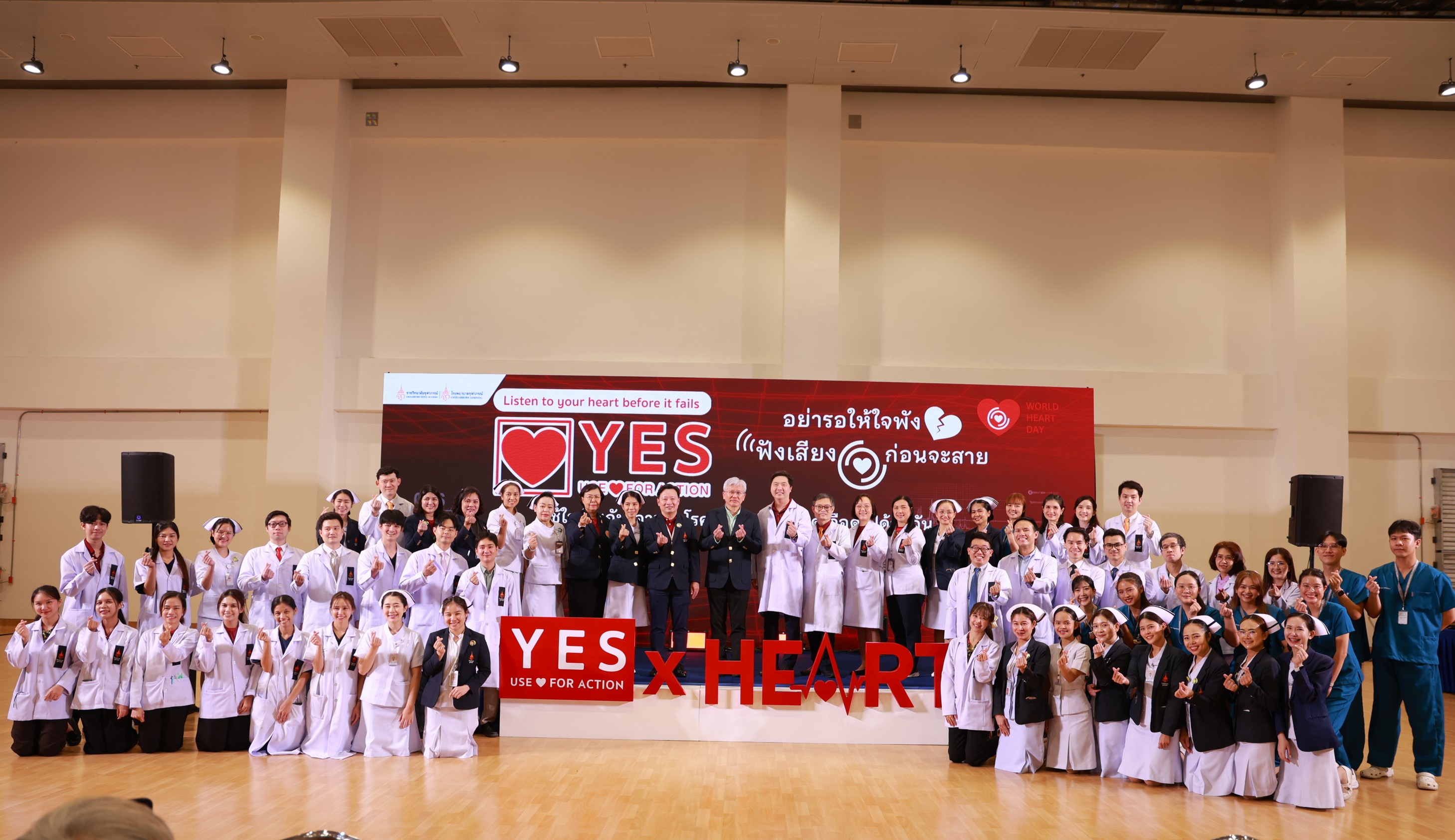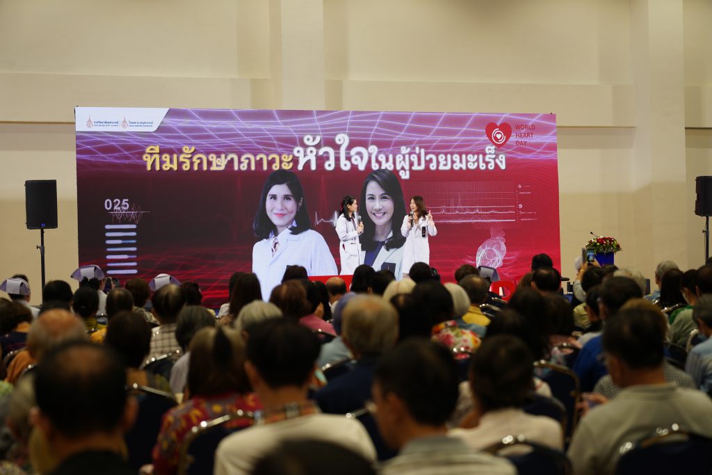 กรุงเทพฯ, 1 ตุลาคม 2568–ศูนย์หัวใจและหลอดเลือด โรงพยาบาลจุฬาภรณ์ ราชวิทยาลัยจุฬาภรณ์ จัดกิจกรรมรณรงค์บริการวิชาการส่งเสริมสุขภาพเนื่องในวันหัวใจโลก ประจำปี 2568 บูรณาการทีมแพทย์และบุคลากรสหสาขาวิชาชีพด้านการดูแลรักษาโรคหัวใจและหลอดเลือด โรงพยาบาลจุฬาภรณ์ร่วมส่งสารรณรงค์สร้างการตระหนักรู้ถึงอันตรายและภาวะต่าง ๆ ของโรคหัวใจและหลอดเลือด ภายใต้แนวคิด “อย่ารอให้ใจพัง ฟังเสียงหัวใจก่อนจะสาย” ใช้ใจร่วมกันเอาชนะโรคหัวใจและหลอดเลือดไปด้วยกัน เพื่อร่วมตอกย้ำสารรณรงค์ตามคำขวัญสมาพันธ์หัวใจโลก คือ YES USE HEART FOR ACTION ทั้งนี้ สมาพันธ์หัวใจโลกได้กำหนดให้ทุกวันที่ 29 กันยายนของทุกปี เป็นวันหัวใจโลก (World Heart Day) และได้ระบุว่า โรคหัวใจและหลอดเลือดยังเป็นสาเหตุการเสียชีวิตอันดับ 1 ของโลก โดยพบผู้เสียชีวิตด้วยโรคหลอดเลือดหัวใจ (CVD) คร่าชีวิตผู้คนไปมากกว่า 20.5 ล้านคนต่อปี แต่การเสียชีวิตก่อนวัยอันควรจากโรคหลอดเลือดหัวใจถึง 80% สามารถป้องกันได้หากเข้าถึงการรักษาที่มีคุณภาพและได้รับการคัดกรองตั้งแต่ในระยะเริ่มต้น รวมถึงทางเลือกในการเลือกโภชนาการที่ดีต่อสุขภาพและการออกกำลังกาย สำหรับประเทศไทยข้อมูลจากกระทรวงสาธารณสุข ปี 2568 ประเทศไทยมีผู้ป่วยสะสมโรคหัวใจและหลอดเลือดมากถึง 2.6 แสนคน และมีแนวโน้มเพิ่มสูงขึ้นในแต่ละปี โดยได้รับเกียรติจาก รศ.นพ.สุรศักดิ์ ลีลาอุดมลิปิ รักษาการผู้อำนวยการโรงพยาบาลจุฬาภรณ์ เป็นประธานเปิดงาน พร้อมด้วย นพ.ดำรงค์ สุกิจปัญญาโรจน์ รองผู้อำนวยการโรงพยาบาลจุฬาภรณ์ และ ดร.นพ.วิโรจน์ เมืองศิลปศาสตร์ ผู้อำนวยการศูนย์หัวใจและหลอดเลือด นำทีมทอล์กสร้างแรงบันดาลใจภายใต้หัวข้อ YES USE HEART FOR ACTION กับ 8 ทีมการดูแลหัวใจครบวงจรของโรงพยาบาลจุฬาภรณ์ พร้อมเปิดตัวบริการใหม่ AF Virtual Ward ระบบการดูแลผู้ป่วยภาวะหัวใจเต้นผิดจังหวะทางไกล ที่ช่วยให้แพทย์สามารถติดตามอาการผู้ป่วยอย่างใกล้ชิด แม้จะอยู่ที่บ้าน ลดความเสี่ยงและเพิ่มคุณภาพชีวิตให้กับผู้ป่วย โรงพยาบาลจุฬาภรณ์ เปิดให้บริการตรวจรักษาผู้ป่วยกลุ่มโรคหัวใจและหลอดเลือด ตามพระดำริของ ศาสตราจารย์ ดร.สมเด็จเจ้าฟ้า ฯ กรมพระศรีสวางควัฒน วรขัตติยราชนารี ที่ทรงมีพระปณิธานในการพัฒนาต่อยอดโรงพยาบาลจุฬาภรณ์เพื่อเพิ่มโอกาสการเข้าถึงบริการทางการแพทย์ที่ครอบคลุมการรักษาทุกโรคให้กับประชาชน โดยตลอดระยะเวลาของการดำเนินงานศูนย์หัวใจและหลอดเลือด โรงพยาบาลจุฬาภรณ์ ได้มุ่งพัฒนาและสร้างนวัตกรรมสุขภาพใหม่ ๆ ของการให้บริการดูแลผู้ป่วยกลุ่มหัวใจและหลอดเลือด ด้วยประสบการณ์
