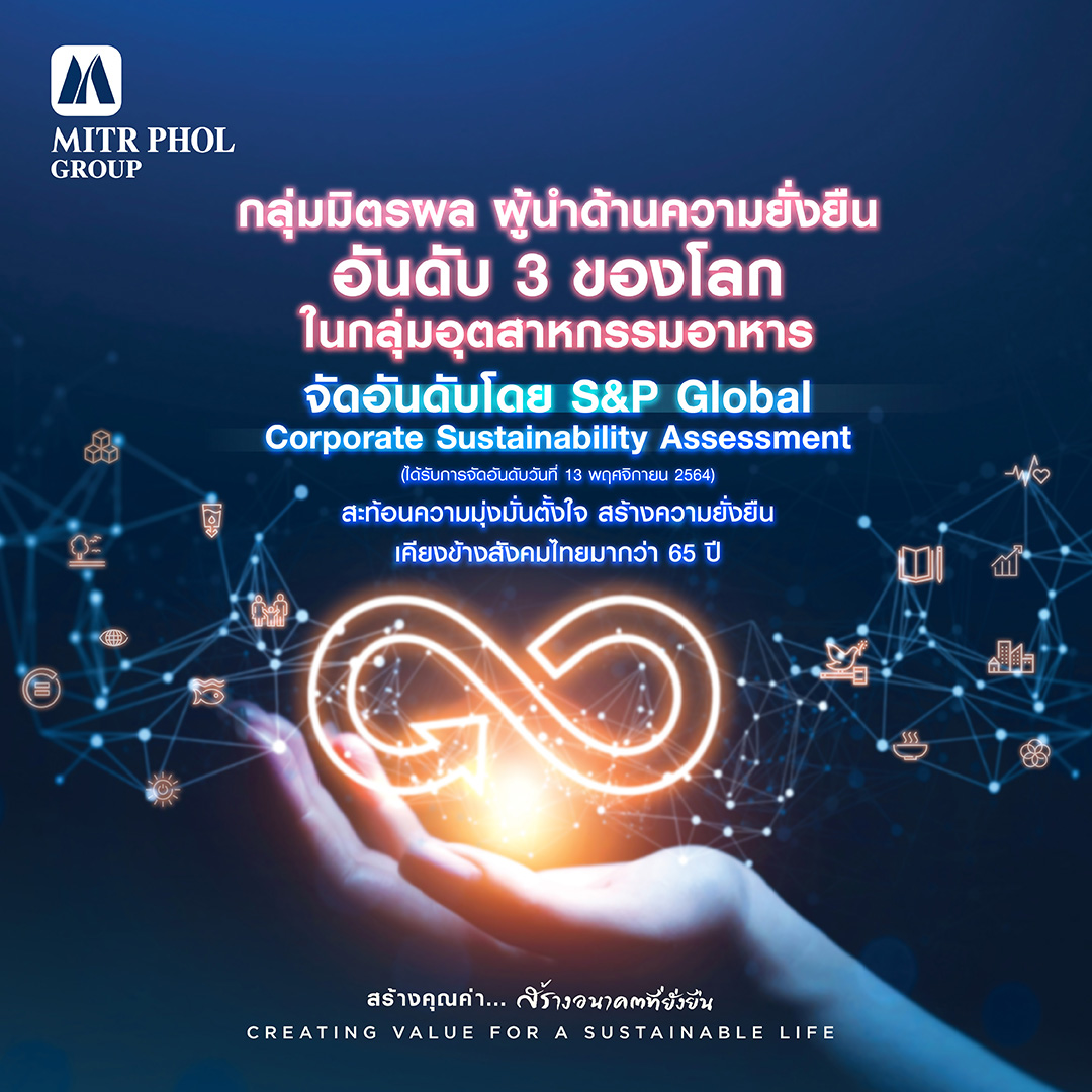 กรุงเทพฯ 25 พฤศจิกายน 2564 – กลุ่มมิตรผล ก้าวขึ้นสู่อันดับ 3 ด้านการพัฒนาเพื่อความยั่งยืน (Sustainable Development) ระดับโลกในกลุ่มอุตสาหกรรมอาหาร จากการประเมินด้านความยั่งยืนขององค์กร หรือ Corporate Sustainability Assessment (CSA) โดย S&P Global โดยขยับขึ้นจากอันดับ 4 ในปี 2563 ที่ผ่านมา สะท้อนถึงความสำเร็จในการดำเนินธุรกิจที่มุ่งมั่นพัฒนาเพื่อสร้างอนาคตที่ยั่งยืนให้กับสังคมมากว่า 65 ปี ตั้งแต่ต้นน้ำสู่ปลายน้ำและยกระดับองค์กรสู่มาตรฐานระดับโลก โดยในปีนี้ นับเป็นปีที่ 4 ที่กลุ่มมิตรผลได้เข้าร่วมการประเมินความยั่งยืนระดับสากล และมีผลงานที่ยอดเยี่ยมในหัวข้อหลักเรื่องเศรษฐกิจ-ธรรมาภิบาล สิ่งแวดล้อมและสังคม ตลอดจนหัวข้ออื่นๆ ที่ได้คะแนนเต็ม 100 คะแนน อาทิ การบริหารจัดการนวัตกรรม การบริหารจัดการความเสี่ยงทรัพยากรน้ำ การดำเนินงานด้านสิทธิมนุษยชน และการพัฒนาชุมชนและสังคมอย่างยั่งยืน เป็นต้น