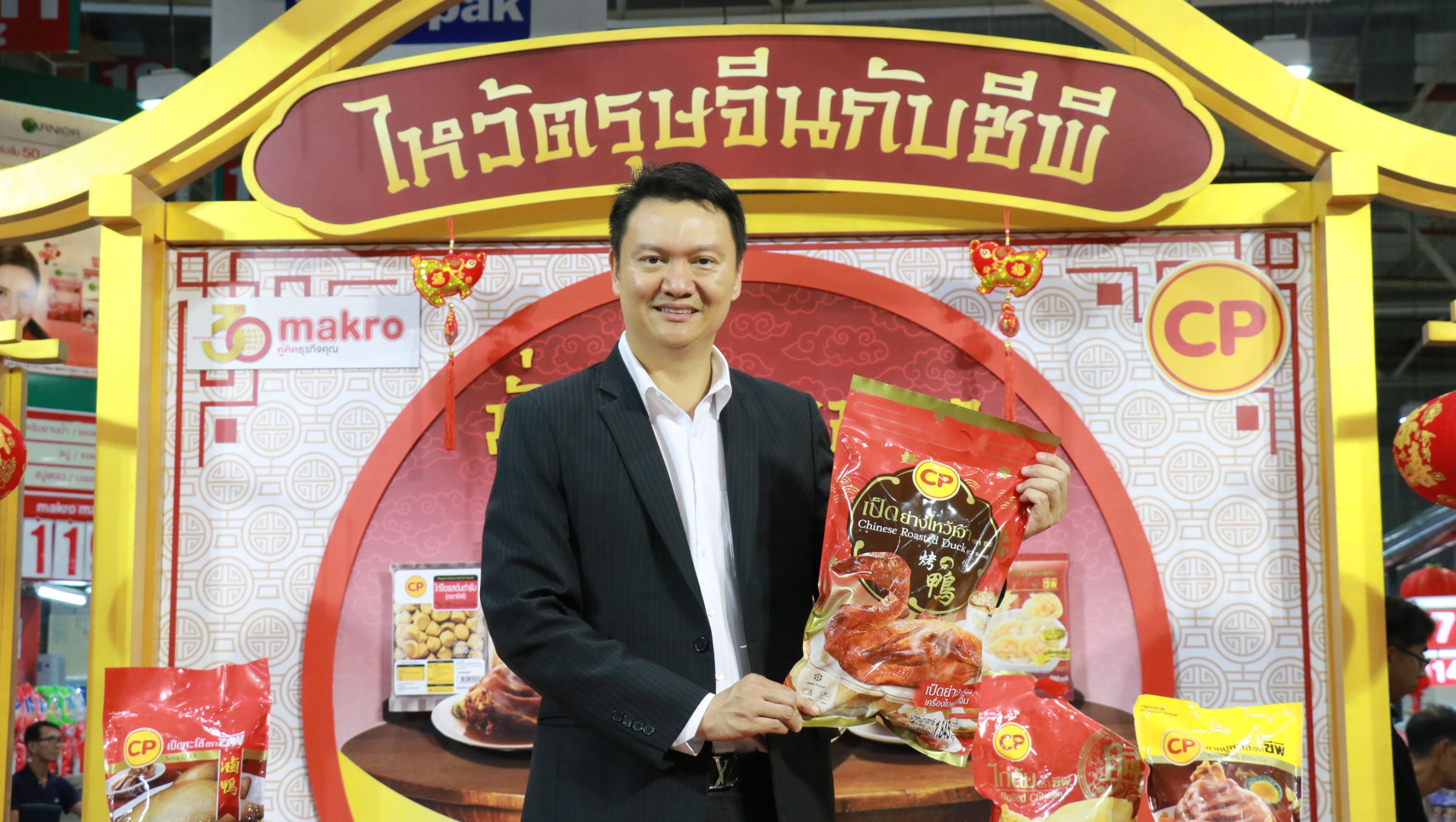 ต้อนรับเทศกาลตรุษจีนปีหมูทอง กับแคมเปญเทศกาลตรุษจีน ของบริษัทเจริญโภคภัณฑ์อาหาร จำกัด (มหาชน) หรือซีพีเอฟ ตอกย้ำภาพลักษณ์ “เจ้าแห่งเทศกาล” เพราะเป็นปีหมูทองจึงพลาดไม่ได้กับการเตรียมของไหว้ “ชุดซาแซขาหมูจักรรพรรดิ” ขาหมูพะโล้ที่มาแบบเต็มชิ้น เนื้อแน่นๆ หนังนุ่ม ถึงรสเครื่องพะโล้ เพื่อความมั่งคั่ง รวมถึง “เปิดนางฟ้า” เป็ดพะโล้ ขนาดตัวกำลังพอดี ปีกสวยงามดั่งนางฟ้า เพื่อความสมบูรณ์ เงินทองไหลมาเทมา และ “ไก่นางพญา” ไก่ต้มทั้งตัว รูปร่างสวย เนื้อแน่น เพื่อความก้าวหน้า ในหน้าที่การงาน หาซื้อได้ง่ายๆ ตั้งแต่วันนี้เป็นต้นไป ณ ห้างแม็คโคร และเทสโก้โลตัส ทุกสาขา