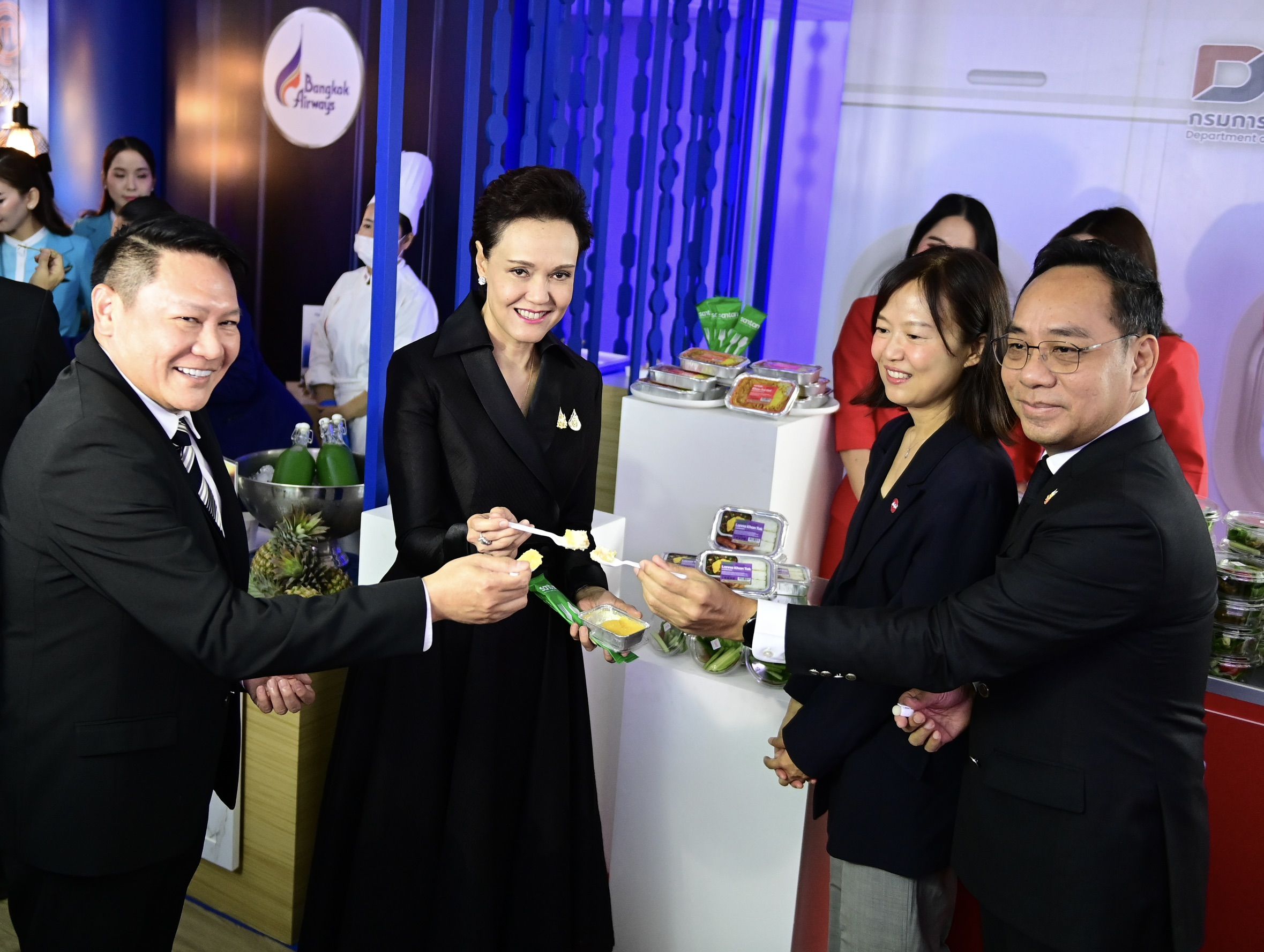 จากนั้นกรมการค้าภายในได้รับมอบหมายให้ขยายความร่วมมือไปยังพันธมิตรสายการบินเพิ่มเติม เพื่อเปิดตลาดใหม่ให้สินค้าเกษตรในกลุ่มปศุสัตว์ ประมง และผลไม้ อาทิ ปลากะพง กุ้งขาวแวนนาไม เนื้อโค ข้าวประณีต สับปะรดภูแล และมะม่วงน้ำดอกไม้สีทอง นำมายกระดับเป็นเมนูอาหารคุณภาพ เสิร์ฟแก่ผู้โดยสารทั้งชาวไทยและชาวต่างชาติ