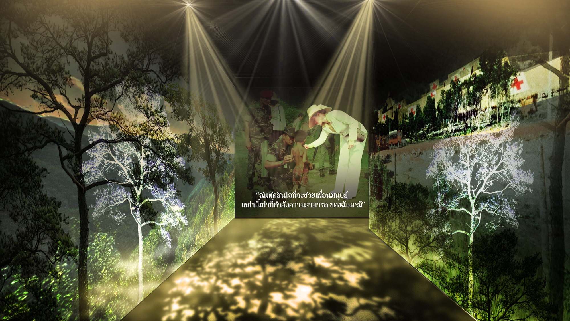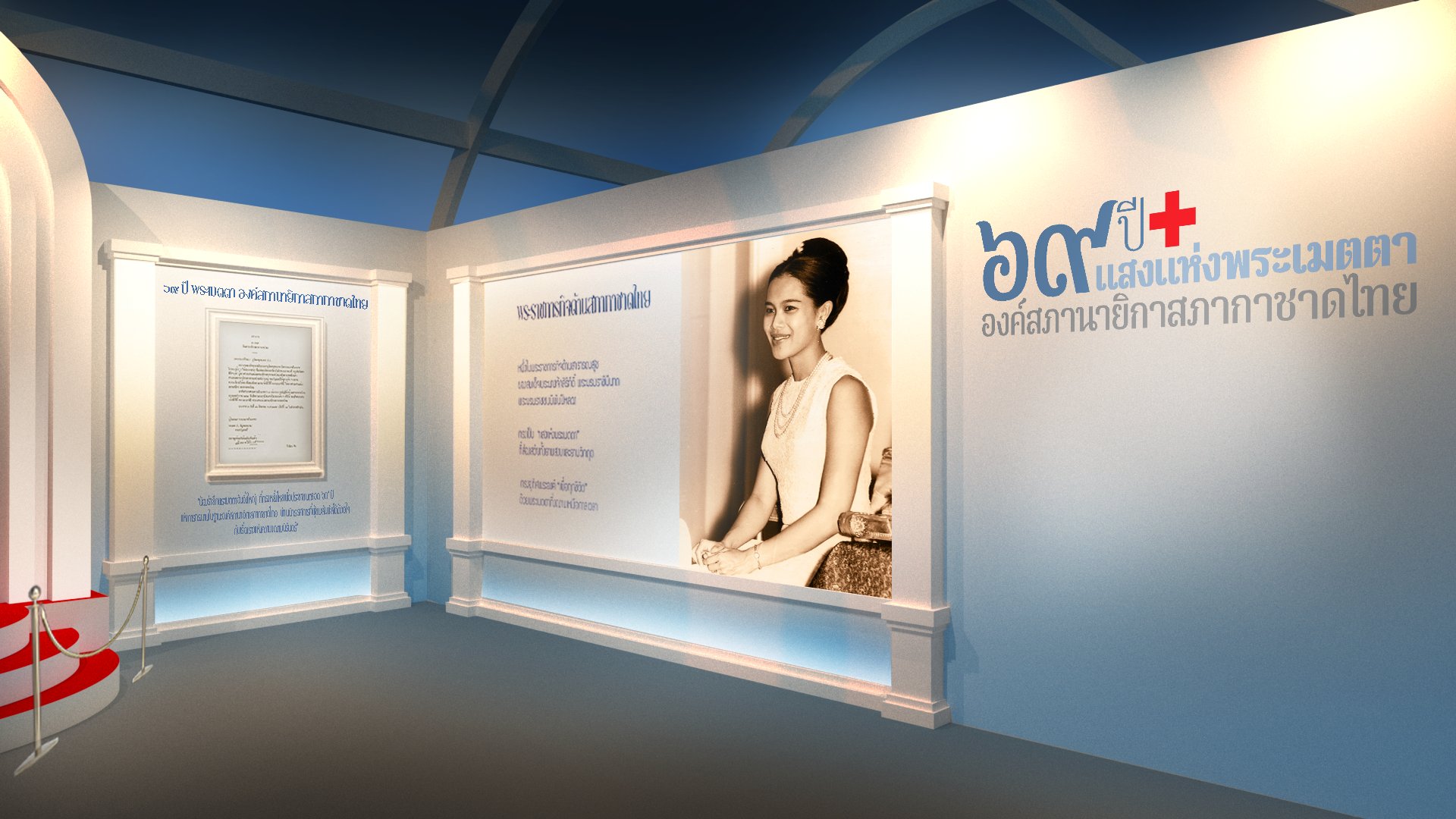 โซนจัดแสดงนิทรรศการ “69 ปี แสงแห่งพระเมตตา องค์สภานายิกาสภากาชาดไทย” จัดแสดง พระราชกรณียกิจ สมเด็จพระนางเจ้าสิริกิติ์ พระบรมราชินีนาถ พระบรมราชชนนีพันปีหลวง เมื่อยังทรงดำรงตำแหน่งสภานายิกาสภากาชาดไทย นับตั้งแต่ปี 2499 จนถึงปี 2568 รวมเวลา 69 ปี โดยถ่ายทอดผ่านนิทรรศการ 4 โซน เริ่มต้นด้วย โซน“แสงแห่งพระเมตตา” มีการจัดแสดงพระเก้าอี้ โต๊ะทรงงานฯ และการจัดแสดงภาพ พระราชกรณียกิจเพื่อให้ประชาชน น้อมรำลึกในพระเมตตาที่ทรงขับเคลื่อนภารกิจด้านมนุษยธรรมของ สภากาชาดไทยตลอด 69 ปี โซน “พระราชกรณียกิจเพื่อทุกชีวิต” ที่จัดแสดงพระราชกรณียกิจ เพื่อการบรรเทาทุกข์ บำรุงสุขแก่ประชาชน อาทิ เหตุการณ์บ้านเขาล้าน พระเมตตาที่มีต่อการแพทย์ การบรรเทาทุกข์ผู้ประสบภัย ด้านการบริการโลหิต ด้านส่งเสริมคุณภาพชีวิต ผ่านแสงสีเสียงในการถ่ายทอดเรื่องราว โซน “พระเมตตาแห่งการแบ่งปัน” นำเสนอพระราชกรณียกิจด้านการหารายได้ ทรงดำริริเริ่มงานหารายได้ใหม่ ๆ โดยเฉพาะในงานกาชาด และโซน “แรงบันดาลใจจากพระเมตตา” จัดแสดงเป็นสวนดอกไม้ พร้อมข้อความพระราชดำรัสที่ทรงพระราชทานในโอกาสต่าง ๆ ผ่านการนำเสนอด้วยเทคนิคทางดิจิทัล ภายในนิทรรศการฯ ยังมีกิจกรรมเชิญชวนประชาชนร่วมบริจาคเงินเพื่อโดยเสด็จพระราชกุศลบำรุงสภากาชาดไทย ผู้บริจาคจะได้รับพระบรมฉายาลักษณ์ สมเด็จพระนางเจ้าสิริกิติ์ พระบรมราชินีนาถ พระบรมราชชนนีพันปีหลวง ในรูปแบบโปสการ์ดอันทรงคุณค่ายิ่ง จำนวน 12 ภาพ จำนวน 60,000 ใบ เป็นที่ระลึก