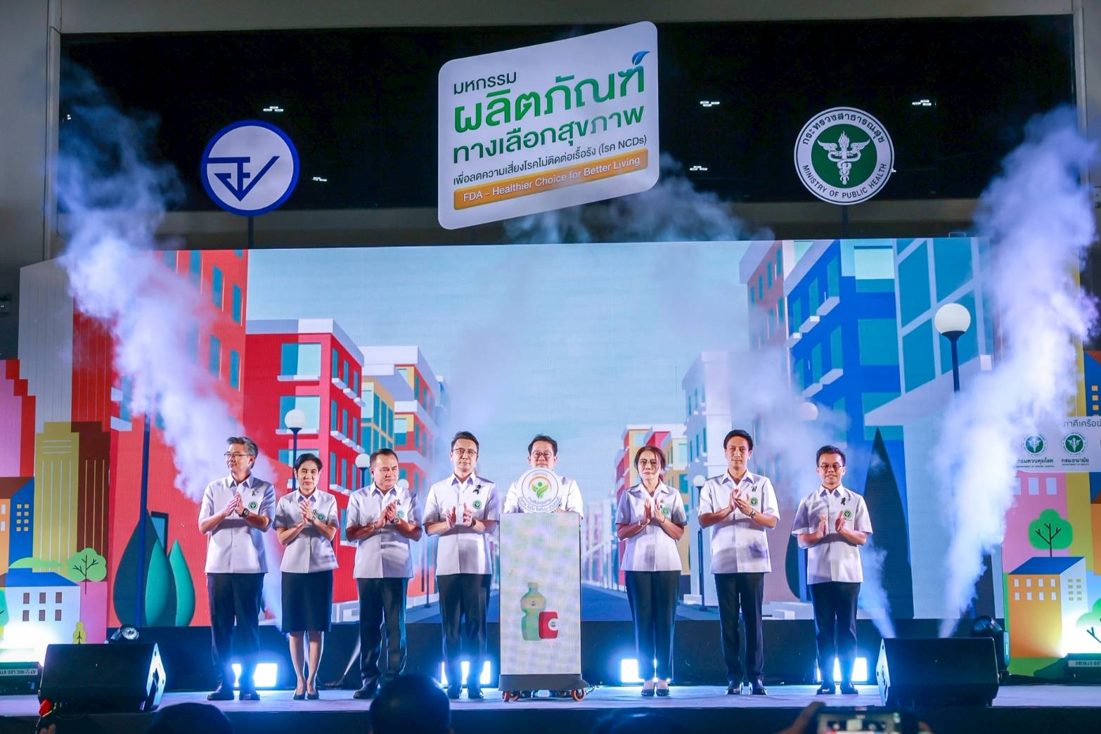 นายพัฒนา พร้อมพัฒน์ รัฐมนตรีว่าการกระทรวงสาธารณสุข กล่าวในพิธีเปิดงานโดยเน้นย้ำถึงวาระเร่งด่วนทางสุขภาพของไทยว่า “วันนี้เรากำลังเผชิญหน้ากับ ‘มหันตภัยเงียบ’ ที่ชื่อว่าโรคไม่ติดต่อเรื้อรัง หรือ NCDs จากรสชาติอาหารหวาน มัน เค็ม ที่เราคุ้นเคย ซึ่งไม่เพียงแต่กัดกินสุขภาพของคนไทย แต่ยังส่งผลกระทบต่อความมั่นคงทางเศรษฐกิจและระบบสาธารณสุขของประเทศ คิดเป็นความสูญเสียทางเศรษฐกิจกว่า 1.6 ล้านล้านบาทต่อปี รัฐบาลและกระทรวงสาธารณสุขจึงไม่ได้มองเรื่องนี้เป็นเพียงแค่การรักษา แต่เรากำลังมุ่งเน้นที่ ‘การป้องกันเชิงรุก’”