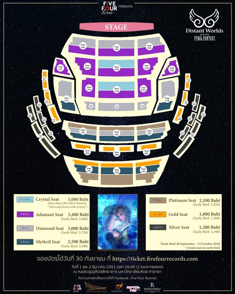 ราคาบัตร : 5,000 / 3,400 / 3,000 / 2,500 / 2,100 / 1,600 / 1,200 บาท