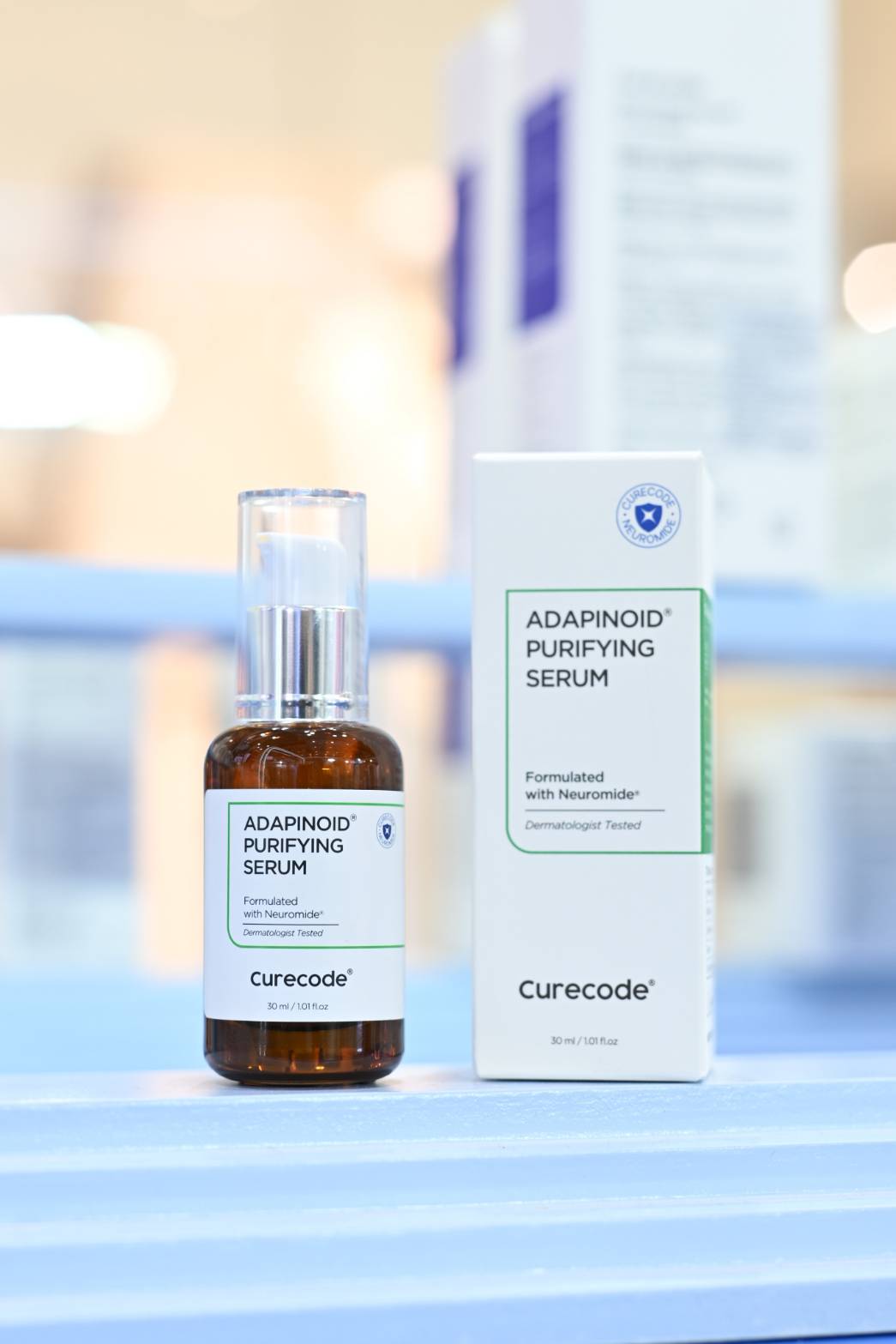 2) CURECODE Adapinoid Purifying Serum นวัตกรรมรีทินอยด์รุ่นใหม่ สำหรับผิวมันและผิวที่มีแนวโน้มเป็นสิวง่าย โดย ดร.เรย์มอนด์ ปาร์ค นักวิทยาศาสตร์ผู้ก่อตั้งแบรนด์ CURECODE และหนึ่งในผู้บุกเบิกแนวคิด Skin Barrier ระดับโลก เจ้าของสิทธิบัตรด้านผิวพรรณกว่า 50 รายการ เผยถึงหัวใจสำคัญว่า “Adapinoid Purifying Serum คือส่วนผสมเอกสิทธิ์ Adapinoid® อนุพันธ์รีทินอยด์เจนเนอเรชั่นใหม่ (รุ่น 3) ที่ถูกออกแบบให้ทำงานในรูปแบบ Smart Delivery System ที่จะค่อยๆ เปลี่ยนสภาพเป็น Adapalene บนผิวอย่างอ่อนโยน ช่วยให้ผิวรู้สึกสบายระหว่างการใช้ เมื่อเทียบกับการใช้รีทินอยด์ทั่วไป”