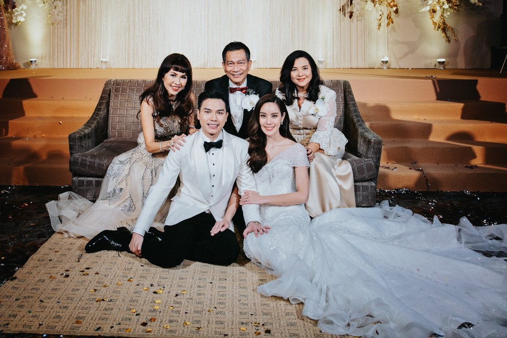 ซึ่งก็ได้มีพิธีแต่งงาน และจดทะเบียนสมรส ไปแล้วเมื่อวันที่ 10 ธันวาคมที่ผ่านมา ซึ่งจัดพิธีกันอย่างอบอุ่นเฉพาะภายในครอบครัวและคนใกล้ชิด ส่วนในค่ำคืนนี้ก็เป็นการฉลองมงคลสมรส ซึ่งมีคุณพ่อคุณแม่ฝ่ายของเจ้าบ่าว และคุณแม่ฝ่ายหญิงแล้ว ยังมีแขกผู้ใหญ่ ญาติสนิท เพื่อนพ้องมาร่วมงานกันอย่างคับคั่ง รวมไปถึงบอสใหญ่แห่งอาร์เอส “เฮียฮ้อ-สุรชัย เชษฐโชติศักดิ์ และคุณสุจีรา ภรรยา” ก็มาร่วมงานในครั้งนี้ด้วย ส่วนเรื่องสินสอดและแหวนเพชรเม็ดงามที่เจ้าสาวสวมอยู่ เจ้าตัวขออุบเป็นความลับไม่ขอบอกเป็นตัวเลข แต่ที่แน่ๆ วันนี้น้องขนมจีนของเรา ได้เปลี่ยนสรรพนามเป็น “นางกุลมาศ สารสาส” เรียบร้อยแล้วจ้า