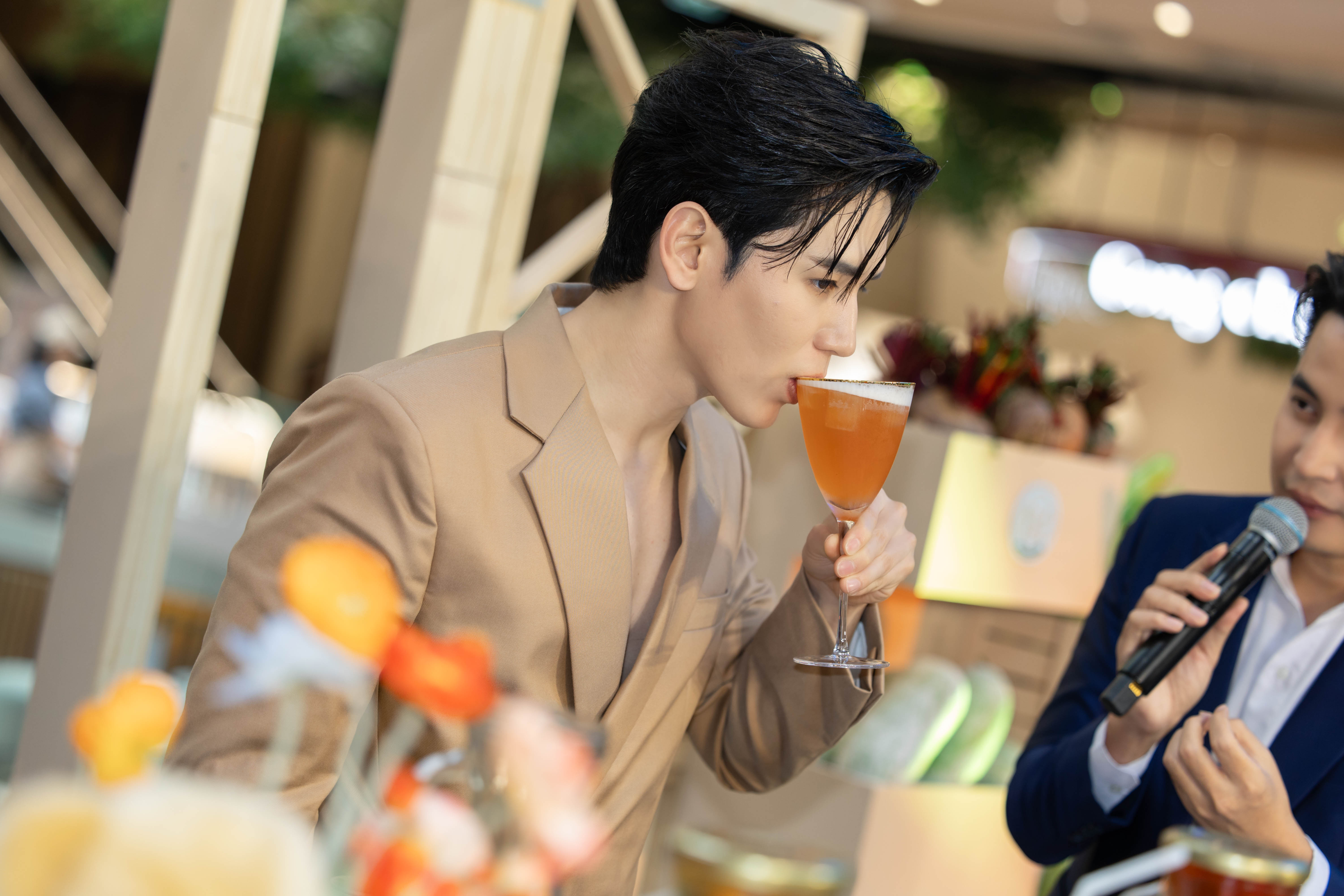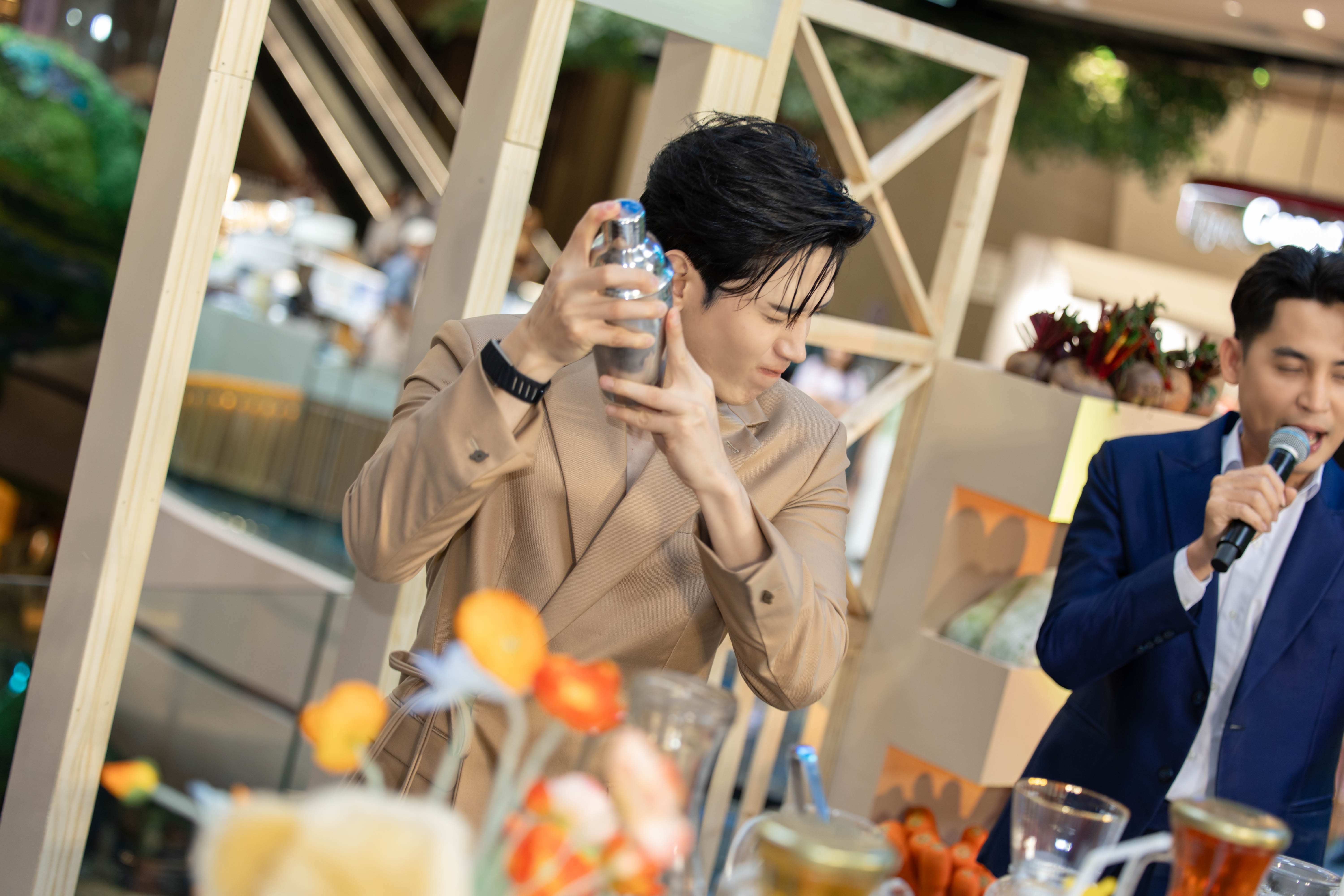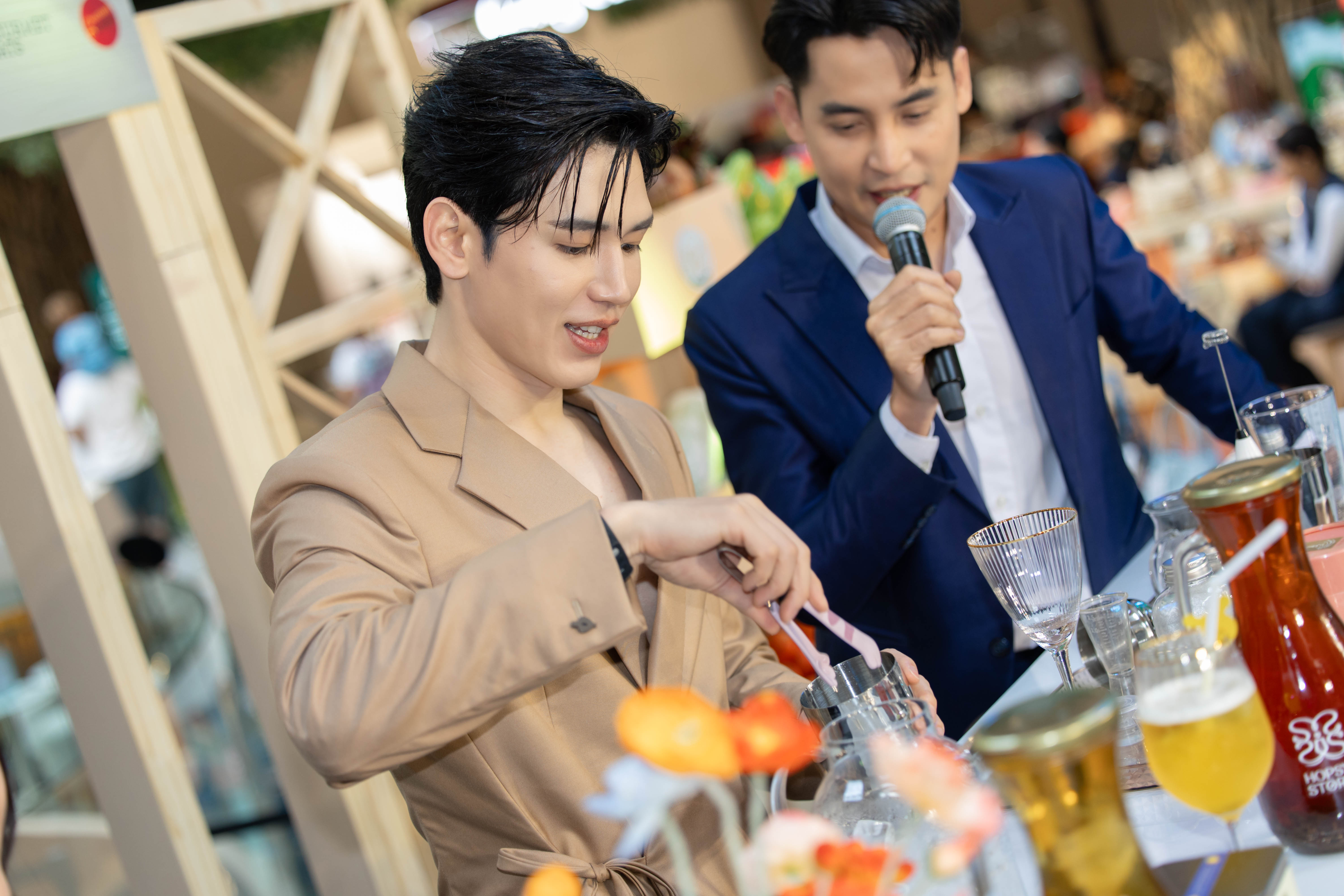 งานนี้นิวไม่ได้มาโชว์แค่รอยยิ้มละลายใจ ยังสวมวิญญาณบาริสต้า โชว์ฝีมือสร้างสรรค์เมนูเครื่องดื่มแก้วพิเศษร่วมกับร้าน Hobsy Story อาทิ Ruby Bliss ที่นำชาแดงจากโครงการหลวงมาผสมบ๊วยและสตรอว์เบอร์รี่เป็น ม็อกเทลที่ให้ความสดชื่น และ Mango Sticky Rice Oolong Tea ชาอู่หลง กลิ่นข้าวเหนียวมะม่วงจากโครงการหลวงถูกนำมาผสมผสานกับชามะม่วงอย่างลงตัว และ Highland Dirty ที่ตั้งใจอยากให้แฟน ๆ ได้สัมผัสรสเข้มและความหอมกรุ่นของเมล็ดกาแฟคุณภาพระดับซูเปอร์มาสเตอร์จากยอดดอย โดยหยิบเอา กาแฟคั่วเมล็ดโครงการหลวง จากแหล่งปลูกดอยสามหมื่น จังหวัดเชียงใหม่ ซึ่งเป็นกาแฟอะราบิกาคุณภาพเยี่ยมที่ผ่านการดูแลอย่างพิถีพิถันตั้งแต่ต้นน้ำจนถึงกระบวนการคั่ว มาเพิ่มรสละมุนด้วยนมสดและวิปครีมนุ่ม ๆ ทำเอาหอมฟุ้งไปทั่วงาน ก่อนที่นิวจะเสิร์ฟให้แฟน ๆ ที่มาร่วมงานได้ชิมแบบเอ็กซ์คลูซีฟ ท่ามกลางบรรยากาศเป็นกันเอง