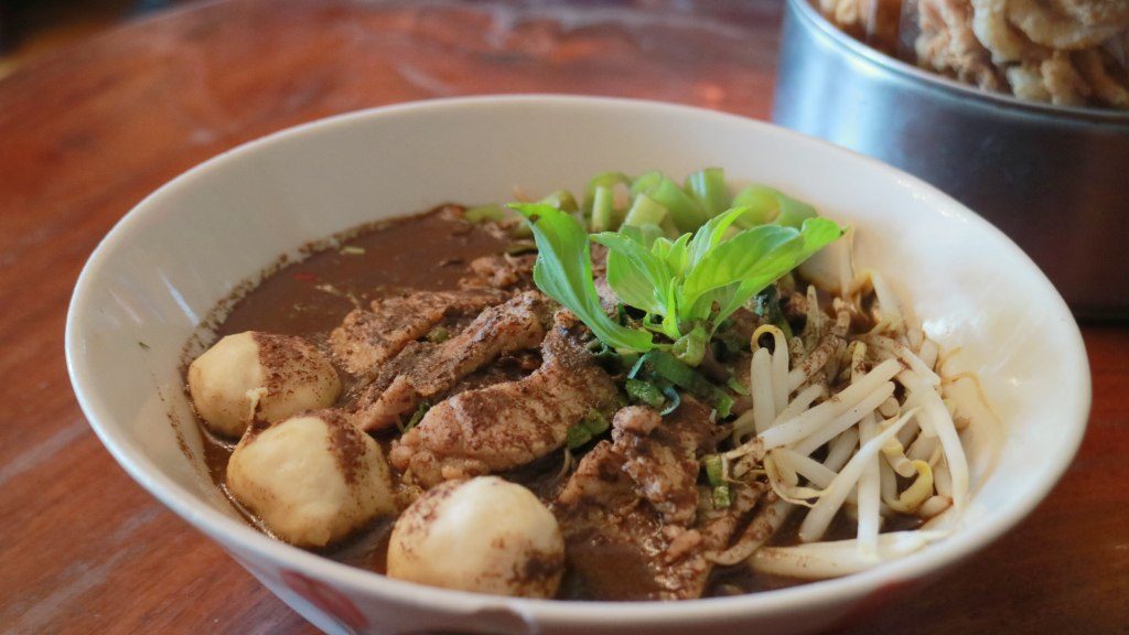 มาถึงทีเด็ดของร้าน คือ ก๋วยเตี๋ยวเรือน้ำตก ที่มีรสชาติน้ำซุปที่กลมกล่อม หอมกลิ่นเครื่องเทศ ประมาณ 30 อย่างที่คัดสรรค์มาอย่างดีจากถนนทรงวาด เยาวราช ส่วนหมู และเนื้อที่ใช้ก็ถูกคัดสรรค์อย่างดี ผ่านการหมักด้วยกรรมวิธี แบบโบราณศุตรเฉพาะไม่เหมือนใคร ทำให้ได้รสชาติที่เหนียวนุ่ม มีกลิ่นหอม และที่สำคัญคือความอร่อยแบบไม่ต้องปรุงกันเลยทีเดียว