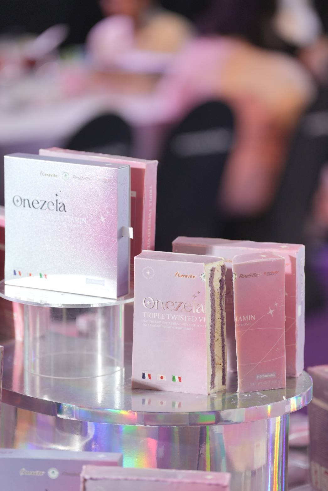 งานจัดขึ้นภายใต้วัตถุประสงค์หลัก คือประกาศเปิดตัวแบรนด์อย่างเป็นทางการ ผลิตภัณฑ์เสริมอาหารสำหรับคนรุ่นใหม่ที่ออกแบบภายใต้คอนเซปต์ “Twist” เป็นผลิตภัณฑ์ที่ผสานคุณสมบัติหลายๆ ด้านอย่างลงตัว Onezela “Triple Twisted Vitamin” เป็นเครื่องดื่มวิตามินผสม 3 พลังบำรุงครบจบในซองเดียว ที่ทั้งฟื้นฟูและบำรุงผิวให้ขาวกระจ่างใส สุขภาพดีจากภายในสู่ภายนอก เสริมพลังสมอง เพิ่มความจำและโฟกัสสำหรับวัยทำงาน รวมถึงมีสารต้านอนุมูลอิสระชะลอวัยถึงระดับเซลล์ แก้ปัญหายอดฮิตของคนรุ่นใหม่ที่ทำงานหนัก ไม่มีเวลาดูแลตัวเอง ขี้หลงขี้ลืม และที่สำคัญไม่จำเป็นต้องซื้อวิตามินหลายๆ ตัว ซึ่ง Onezela สามารถตอบโจทย์ความต้องการได้อย่างครบถ้วน
