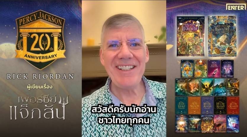 นับจากที่ PERCY JACKSON AND THE OLYMPIANS: THE LIGHTNING THIEF ของ Rick Riordan หรือชื่อไทยคือ เพอร์ซีย์ แจ็กสัน กับสายฟ้าที่หายไป ได้วางจำหน่ายเป็นครั้งแรกที่สหรัฐอเมริกาเมื่อปี 2005 โลกก็ได้รู้จัก “เพอร์ซีย์ แจ็กสัน” หนุ่มน้อยมนุษย์กึ่งเทพจอมกวนผู้มีจิตใจดีงามมาเป็นเวลา 20 ปีแล้ว สำนักพิมพ์ ENTER BOOKS ผู้รับผิดชอบจัดพิมพ์หนังสือชุดเพอร์ซีย์ แจ็กสัน ฉบับภาษาไทย จึงเห็นโอกาสดีที่จะจัดกิจกรรมฉลองวาระครบรอบนี้ในงานมหกรรมหนังสือระดับชาติ ครั้งที่ 30 ครั้งนี้