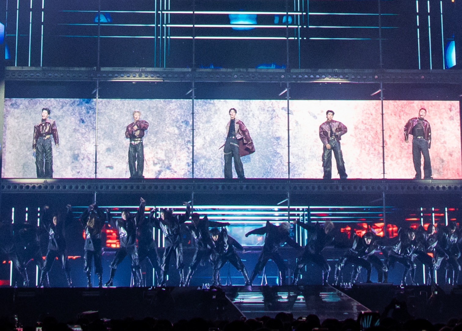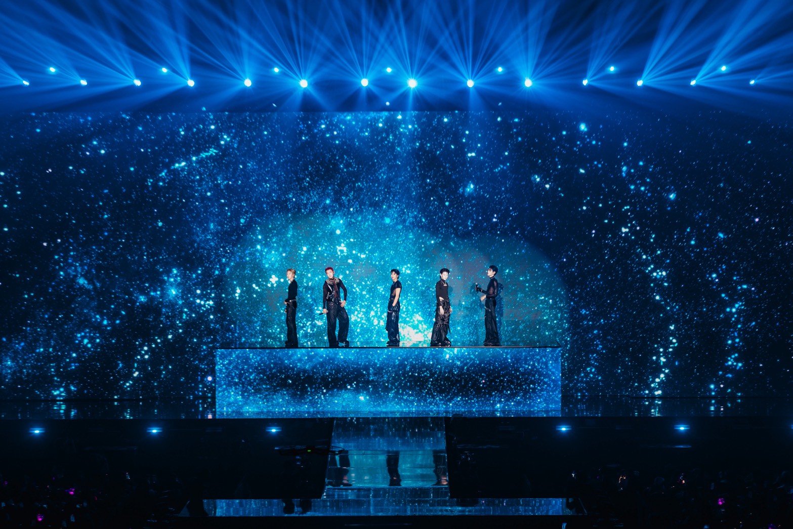 Myจากนั้นเข้าสู่พาร์ทเดี่ยว 5 โชว์ 5 สไตล์ ที่เรียกได้ว่าเป็นบทพิสูจน์ศักยภาพของทั้ง 5 สมาชิกอย่างแท้จริง เริ่มจาก ปลั๊กกี้ ที่ปรากฏตัวพร้อมเพลง Sport Car พร้อมโชว์ลีลาการเต้นเอวหวานสุดร้อนแรงที่พลิ้วเป็นเอกลักษณ์ สนุกสะกดสายตาทุกวินาที ต่อด้วย กฤติน ที่พลิกอารมณ์ทั้งฮอลล์ให้สงบนิ่งราวถูกสะกดด้วยเพลง งานเต้นรำในคืนพระจันทร์เต็มดวง น้ำเสียงนุ่มลึกที่พาให้คนดูซึมซับทุกตัวโน้ต ซึ่งทำเอาแฟน ๆ ตะลึงกันเลยทีเดียว สตั๊นกันต่อในโชว์ของ ปาล์ม กับเพลง Birthday คือหนึ่งในโมเมนต์ที่ทำให้ทั้งฮอลล์เหมือนถูกหยุดเวลา เสน่ห์ของเขาถ่ายทอดผ่านทั้งสายตา การควบคุมจังหวะ และน้ำหนักการเต้นที่แม่นยำจนผู้ชมแทบไม่กะพริบ ยิ่งเมื่อ ปลั๊กกี้ ก้าวขึ้นมาร่วมสเตจ ความดุของเพอร์ฟอร์มานซ์ก็ถูกยกระดับทันที การประสานกันอย่างเป๊ะของทั้งคู่ ทั้งลีลาการเต้น มูฟเมนต์ และพลังบนเวที ทำให้โชว์นี้ดูสมบูรณ์แบบอย่างมีมิติ ส่วน เน ก็โปรยเสน่ห์ชวนกรี๊ดสลบไปกับโมเมนต์ที่เกือบหยุดหายใจด้วยลุคสุดเท่ พร้อมโชว์สกิลการร้องแบบจัดเต็มในเพลง นักเลงเก่า ที่แฟน ๆ กรี๊ดหนักมากกับโชว์ที่ไม่เคยเห็นเนในมุมนี้ และปิดท้ายด้วย จั๋ง ที่โชว์ศักยภาพการร้องสุดพลังในเพลง Mommae พร้อมจัดเต็มสเตปแดนซ์ แถมทำให้ใจเต้นรัว ๆ ด้วยการถอดเสื้อโชว์ซิกแพคแน่น ๆ ที่ทำเอาฮอลล์แทบลุกเป็นไฟ ก่อนจะตอกย้ำความสามารถอีกด้านด้วยการตีกลองที่ทั้งหนักแน่นและแม่นยำ เรียกเสียงกรี๊ดจนฮอลล์สั่นสะเทือน ซึ่งทันทีที่พาร์เดี่ยวจบลง ปาล์ม–กฤติน–ปลั๊กกี้ เสิร์ฟความฟินต่อเนื่อง ในเพลง Feeling Good ที่เปิดด้วยลีลาแท็ปแดนซ์ที่เฉียบคมสะกดทุกสายตาของปาล์ม ขณะที่กฤตินและปลั๊กกี้โชว์พลังเสียงที่ถ่ายทอดออกมาได้ลึกถึงอารมณ์ที่พุ่งตรงถึงคนดู ก่อนส่งต่อให้ จั๋ง และ เน ในเพลง Blueprint Supreme ที่ทั้งคู่งัดทุกสกิลออกมาอย่างไม่มีกั๊ก ทั้งร้อง ทั้งเต้น ทั้งการเพอร์ฟอร์มบนเวที ที่ทำให้โชว์นี้เต็มไปด้วยความเฟอร์เฟกต์