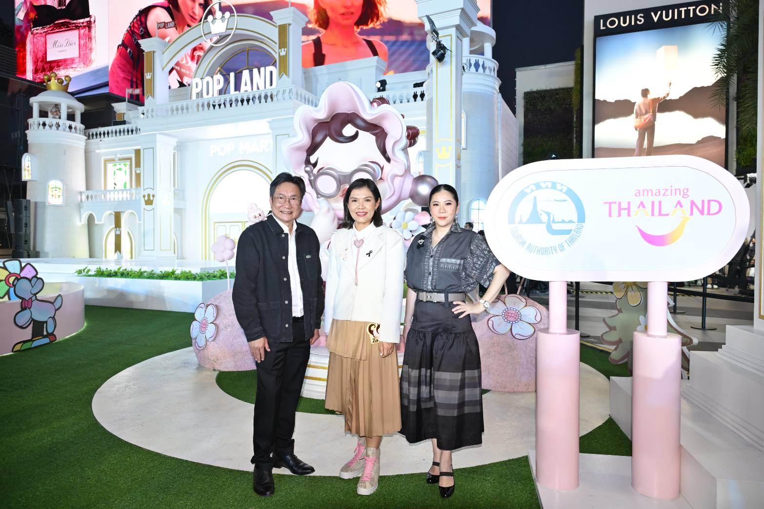 POP MART THAILAND ภายใต้การบริหารของ POP MART INTERNATIONAL ผู้ผลิตและจัดจำหน่าย อาร์ตทอยส์รายใหญ่ระดับโลก นำโดย คุณศิริพร แผลงจันทึก Country General Manager บริษัท ป๊อป มาร์ท (ประเทศไทย) ร่วมกับ คุณฐาปนีย์ เกียรติไพบูลย์ ผู้ว่าการการท่องเที่ยวแห่งประเทศไทย (ททท.) และ คุณธณพร ตันติยานนท์ กรรมการผู้จัดการ ผู้บริหารศูนย์การค้าสยามพารากอน เปิดโลกแห่งจินตนาการกับอาร์ตทอยส์สุดคิวต์กลางกรุงเทพฯ กับงาน “POP LAND EXCLUSIVE FESTIVE EVENT IN THAILAND” ที่จะพาทุกคนไปสัมผัสปรากฏการณ์ความน่ารักระดับโลกในดินแดนแห่งความสุขจาก POP LAND ฉลองเทศกาลปลายปี บนพื้นที่รวมกว่า 1,000 ตร.ม. ที่ครอบคลุมสยามพารากอนและสยามเซ็นเตอร์ โดยภายในงานได้รับเกียรติจาก บี้ – ธรรศภาคย์ ชี, กุ๊บกิ๊บ – สุมณทิพย์ ชี, น้องเป่าเปา – พอลลีน่า ชี, น้องเป่าเป้ย์ – ลาลิน่า ชี, ไปป์-มนธภูมิ สุมนวรางกูร และนิว – ชยภัค ตันประยูร มาร่วมสร้างสีสันให้กับชาวป๊อป Outdoor Pop-Up Event ที่ใหญ่ที่สุดของ POP LAND