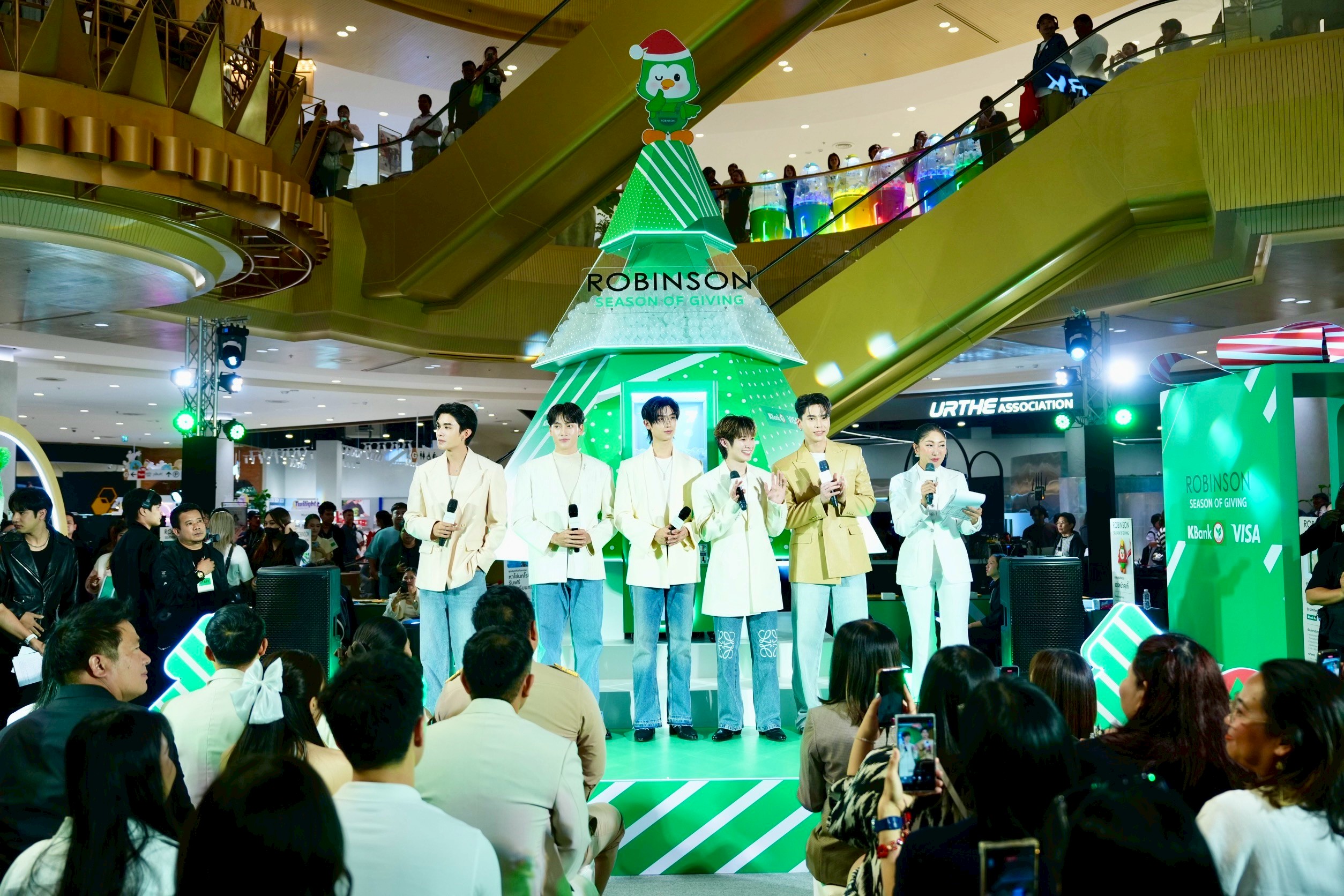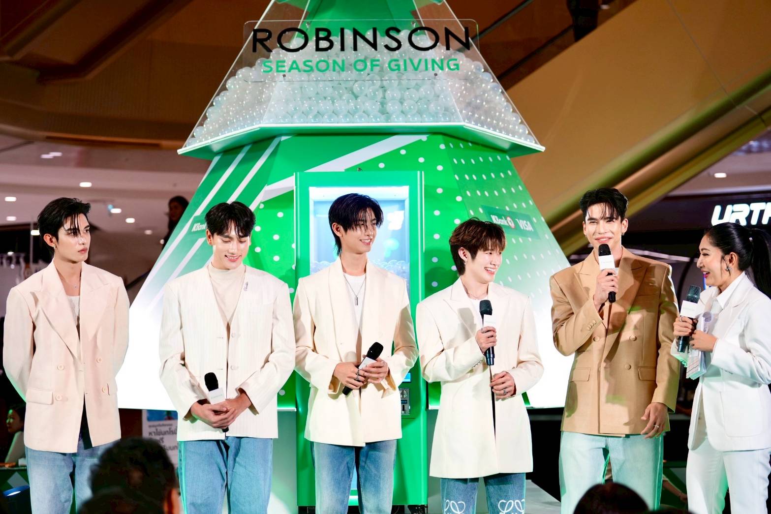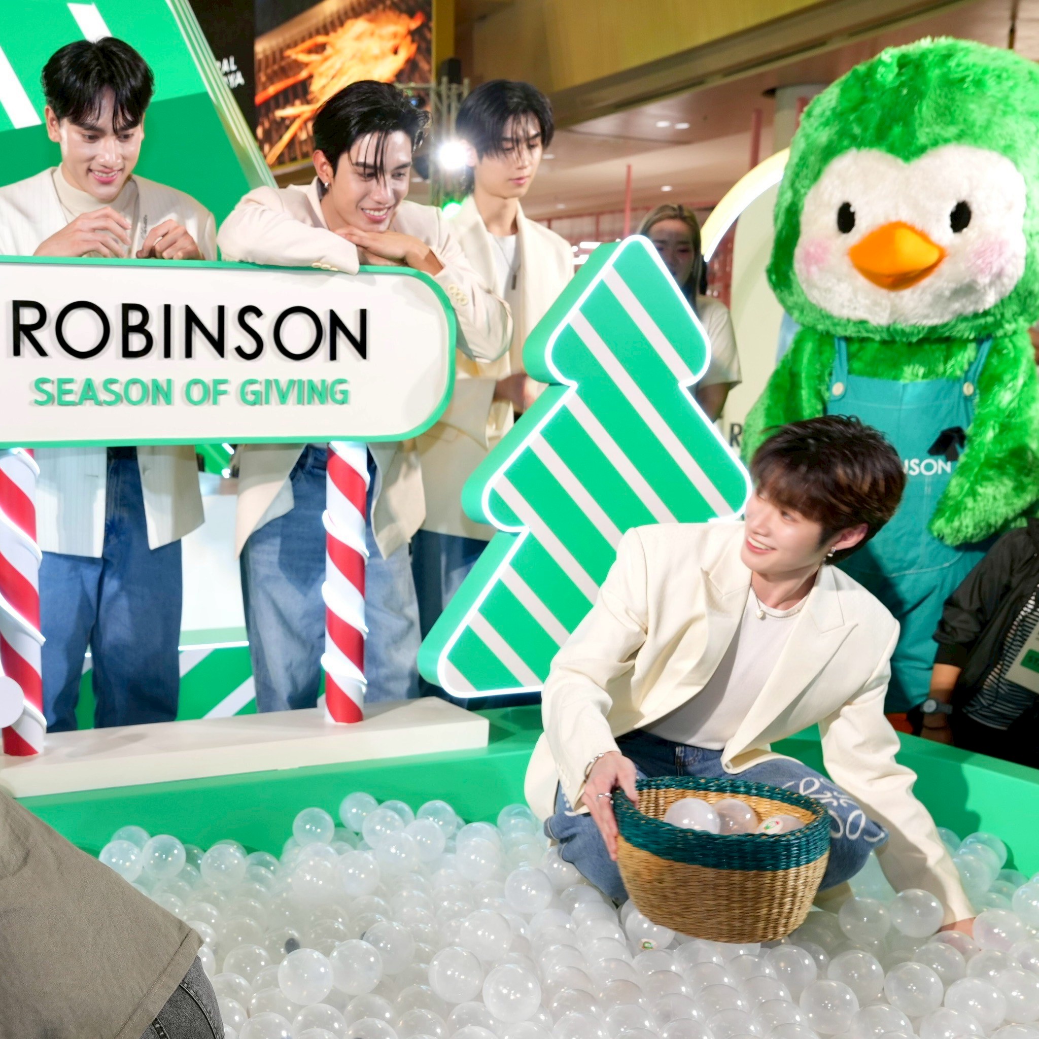 เปิดโมเมนต์แห่งความสุขของเทศกาลแห่งการ ‘ให้’ด้วย 5 ดาราหนุ่มสุดฮอต โทมัส – ธีร์ทัศน์ จึงมณีรัตน์, ปัง – พิรุฬห์วัตน์ พรมรัตน์, เน็ต – สิรภพ มานิธิคุณ, ณฐ – ณฐสิชณ์ เอื้อเอกสิชฌ์ และ แม้ก – กรธัสส์ รุจีรัตนาวรพันธุ์ ที่มาพร้อมขบวนน้องนก โรบิ้นสุดคิวต์ แถมยังสร้างความสนุกสุดเอ็กซ์คลูซีฟกับแฟน ๆ 10 ผู้โชคดีที่ได้ถ่ายภาพแบบใกล้ชิด และอีก 20 ผู้โชคดีที่ได้ร่วมเล่นเกมและเวิร์กชอปใน 4 โซนกิจกรรม (สำหรับลูกค้าที่มียอดช้อปภายในห้างครบ 2,000 บาท ตามเงื่อนไขที่กำหนด) ก่อนปิดท้ายด้วยมินิคอนเสิร์ตสุดอบอุ่นจากทั้ง 5 หนุ่ม นอกจากนี้ยังมีเหล่าดาราจากแบรนด์ชั้นนำอย่าง เฟ กัญญาพัชร ณ นคร และ เมย์ ญดา วัชระมูสิก จาก แบรนด์ NIYOM JEANS รวมทั้ง โดนัท – ศุภวิชญ์ ทองยืน จากแบรนด์ PLAYBOY มาร่วมเสริมทัพความสุขให้ “ROBINSON SEASON OF GIVING” กลายเป็นเทศกาลแห่งการ ‘ให้’ ที่สมบูรณ์แบบแห่งปี โดยแฟน ๆ สามารถชมบรรยากาศสด ๆ พร้อมกันทั่วประเทศผ่านทาง Live บน Facebook Page / YouTube: Robinson Department Store ได้อีกด้วย