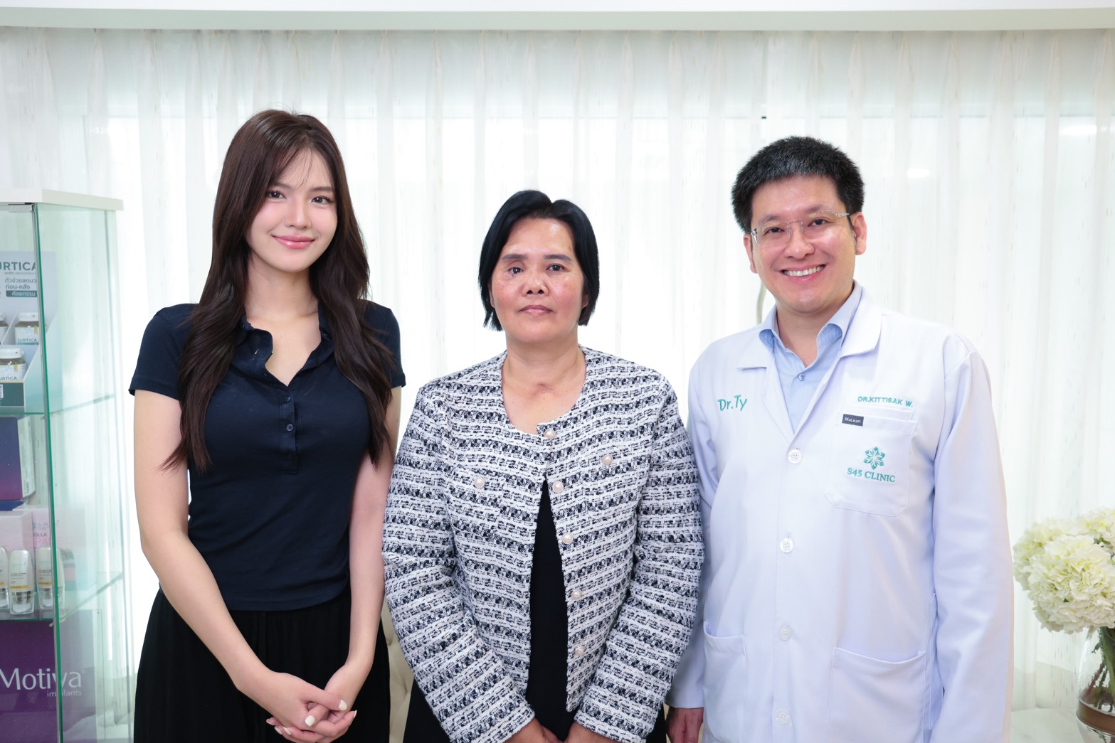 โซแบม เผยว่า “ทีมแพทย์ S45 Clinic เก่งมากๆเลยค่ะ เคสของคุณแม่ถือเป็นหนึ่งในเคสที่มีความยากที่สุดแห่งปี คุณแม่ได้รับบาดเจ็บรุนแรงจากอุบัติเหตุกระจกแทงจมูกทะลุถึงเบ้าตา จนสูญเสียการมองเห็นไป 1 ข้าง ใบหน้าเสียโฉม โครงสร้างใบหน้าฝั่งขวาเสียหาย ทำให้ตำแหน่งของตาตกลงมาอยุ่ในจุดที่ผิดรูป ซ้ำยังมีภาวะติดเชื้อซ้ำซ้อนจนทำลายโครงสร้างเนื้อเยื่อ การรักษาครั้งนี้เป็นการวางแผนร่วมกันระหว่าง คุณหมอตี้ นายแพทย์กิตติศักดิ์ วงค์เทียนชัย ประธานเจ้าหน้าที่บริหารและผู้อำนวยการทีมแพทย์ S45 Clinic ผู้เชี่ยวชาญด้านการศัลยกรรมจมูกแบบเปิด แก้ไขโครงสร้าง (Open Rhinoplasty) และคุณหมอเต๋า นายแพทย์ นครินทร์ จรัสวิริยะกุล แพทย์ผู้เชี่ยวชาญด้านการยกคิ้ว ดึงหน้าเทคนิคส่องกล้อง และการปรับรูปทรงใบหน้าด้วยไขมัน เพื่อแก้ไขกู้คืนใบหน้าให้กลับมาเป็นปกติอีกครั้ง