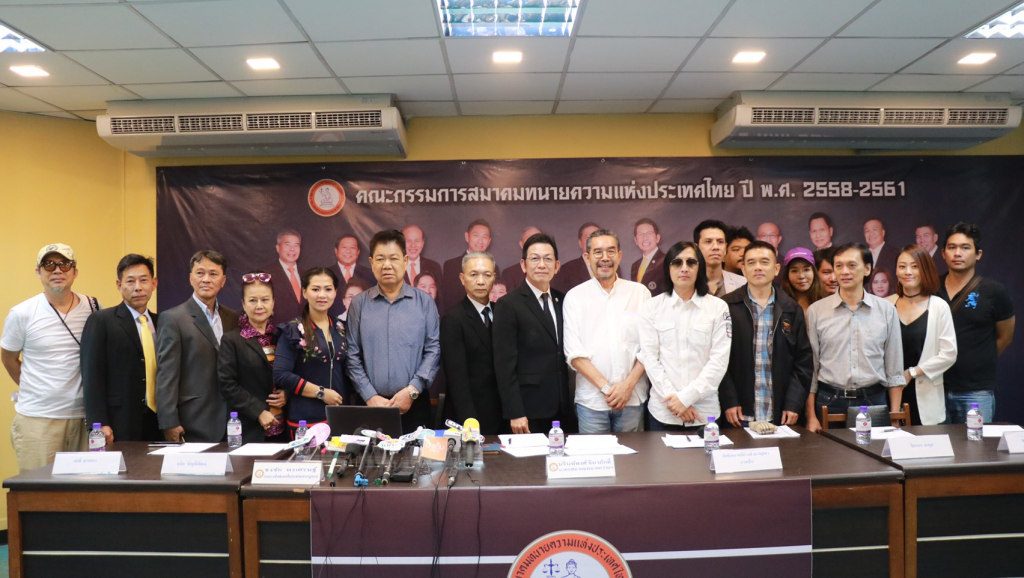 นาย นรินทร์พงศ์ จินาภักดิ์ นายกสมาคมทนายความแห่งประเทศไทย ร่วมกับ ตัวแทนกลุ่มศิลปินนักแต่งเพลง นำโดย นายอิทธิพล เสนีย์วงศ์ ณ อยุธยา (เวสป้า) ชลธี ธารทอง ชรัส เฟื่องอารมณ์ จิตติมา เจือใจวีระนนท์ นวชานน (วีระ เดชไกรวัลย์) ธรา เทียนธรรมชัย วินัย จรัสอาชา จารึก ไกรสรพงษ์ คงสิริ เนินลพ ปัณณรัตน์ พนิตสิรินันท์ ศรายุทธ จันทร์โอวาท ศิวัช วัชรวรรณี วรพรพัฒน์ ตรีเกสรนพมาศ สดใส รุ่งโพธิ์ทอง ณรงค์ เดชะ อุ่น เรนโบว์ ธนันต์ เชิญพิพัฒน์ ธนิต เชิญพิพัฒน์ ไมตรี นิยมแสง อ.วิไล พนม เจี๊ยบพิสุทธิ์ นายรุ่งโรจน์ เด่นเจริญ และ ชัยรัตน์ วงศ์เกียรติขจร