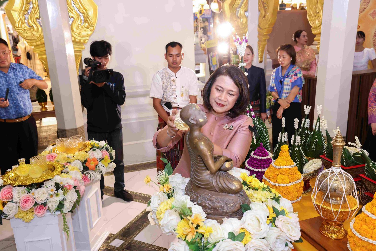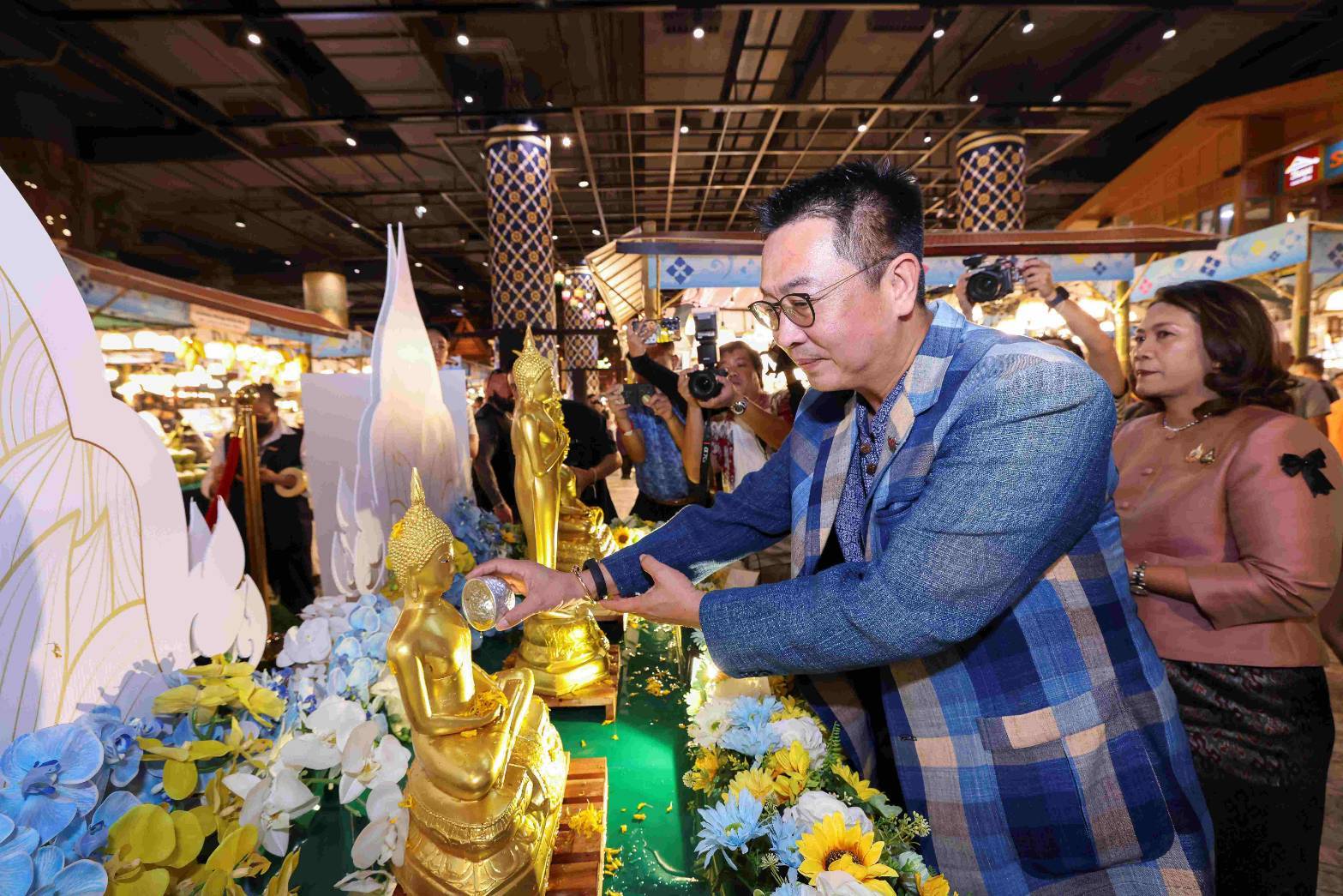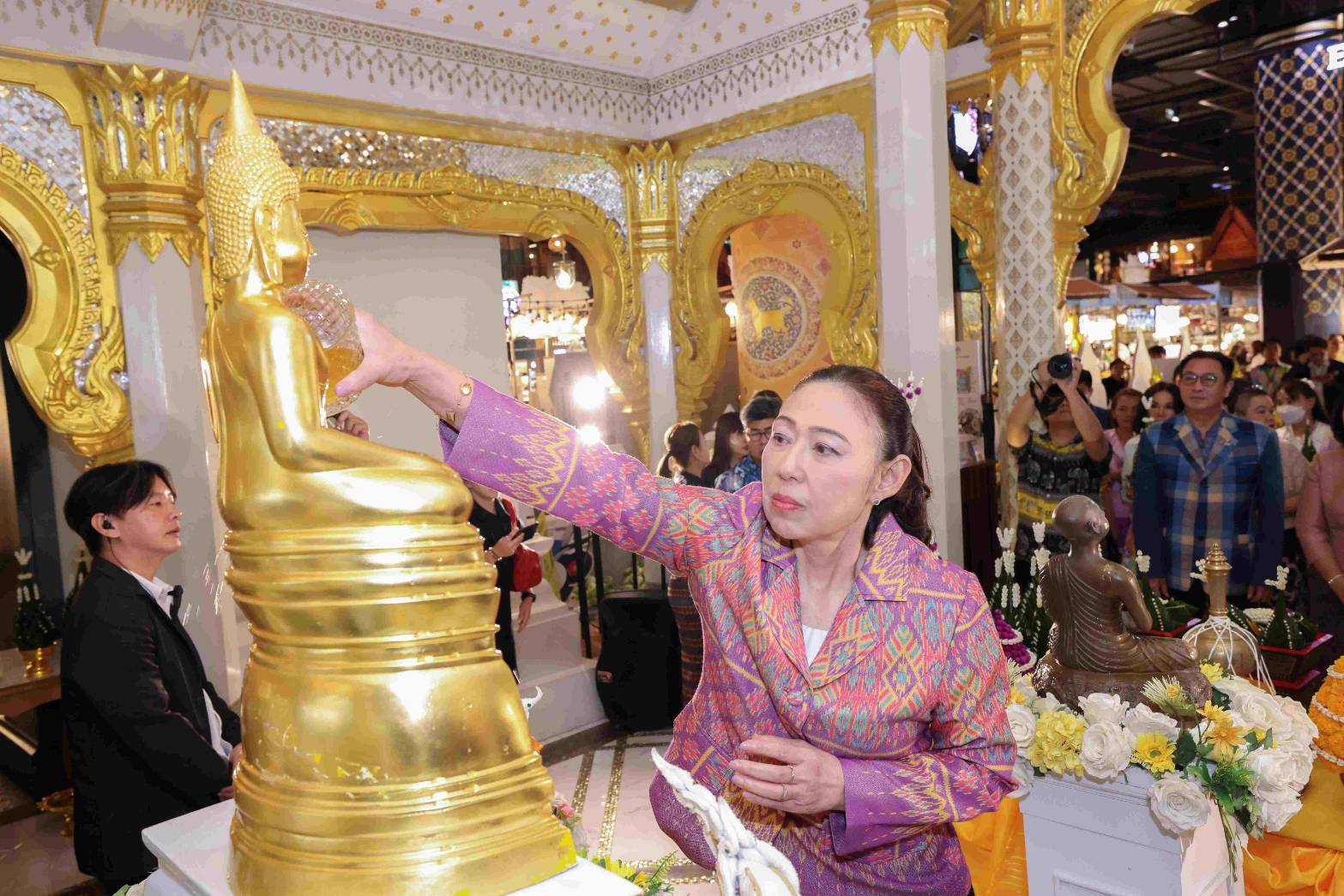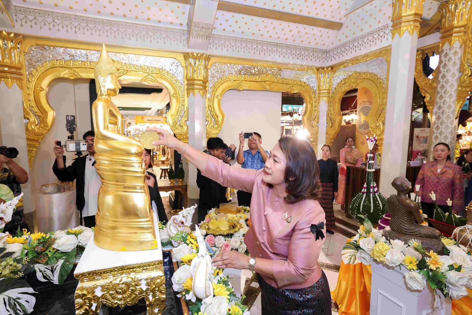 เมืองสุขสยาม ณ ไอคอนสยาม ได้ประกอบพิธีอัญเชิญหลวงพ่อเงินเพื่อถวายน้ำสรงจัดขึ้นในงานบุญเดือน ๕ เป็นจารีตประเพณีดั้งเดิมของโบราณอีสาน อันบ่งชี้ถึงความบรรจงวิจิตรแห่งศรัทธาในพระพุทธศาสนาของท้องถิ่น “หลวงพ่อเงิน” เป็นพระพุทธรูปเงิน ปางมารวิชัย ศิลปะเชียงแสนล้านช้าง พระพุทธรูปศักดิ์สิทธิ์โบราณ คู่บ้านคู่เมือง อายุกว่า 700 ปี ที่ได้รับการยกย่องว่าเป็น “พระชัยหลังช้างแห่งแผ่นดินอีสาน” ในการสถาปนา เมืองอุบลราชธานี ศรีวนาลัย ประเทศราช จากวัดปากน้ำ (บุ่งสระพัง) จังหวัดอุบลราชธานี มาสู่เมืองสุขสยาม พร้อมได้จัดให้มีการจัดขบวนแห่รอบเมืองสุขสยาม เพื่อเป็นสิริมงคลแก่ร้านค้าพันธมิตรและนักท่องเที่ยวโดยรอบ ก่อนอัญเชิญ “หลวงพ่อเงิน” ขึ้นประดิษฐาน ณ ประตูสุขสุวรรณศาลา เมืองสุขสยาม ณ ไอคอนสยาม ชั้น G เพื่อให้ประชาชนและนักท่องเที่ยวได้ร่วมสรงน้ำถวายหลวงพ่อเงิน น้อมสักการะขอพร เสริมความเป็นสิริมงคลต้อนรับเทศกาลปีใหม่ไทย รวมถึงสรงน้ำขอพร พระอุปคุต และพระประจำวันเกิด ตั้งแต่วันที่ 8 – 15 เมษายน 2569