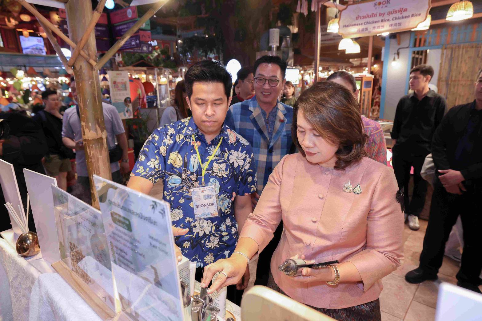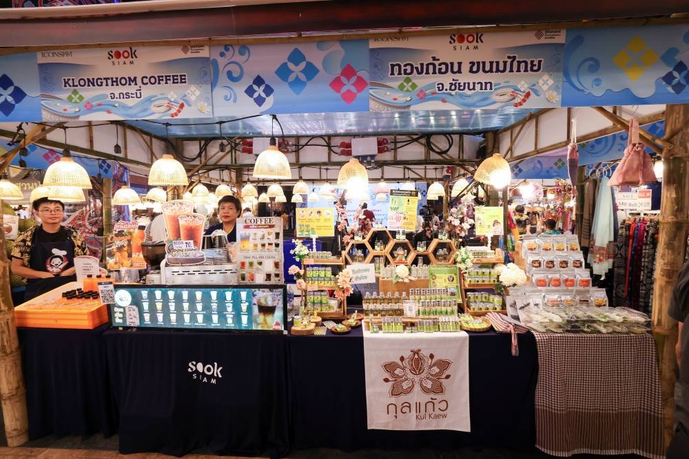 เมืองสุขสยามร่วมกับบริษัท รู้รักสามัคคี วิสาหกิจเพื่อสังคมประเทศไทย สนับสนุนผลิตภัณฑ์สินค้าภูมิปัญญาชาวบ้านจากโครงการรู้รักสามัคคี สร้างเศรษฐกิจอย่างยั่งยืนครบจบในที่เดียว ชวนช้อปบูทร้านค้ารู้รักสามัคคี อาทิ วิมพ์วิภาผ้าขาวม้า นนทบุรี, รู้รักพิจิตร, ขนมไทยพิจิตร, ไอศครีมครูแดงและน้ำสมุนไพร ปทุมธานี, ห่วงมหัศจรรย์และของเล่นโบราณ, รู้รักชัยนาท และยังยกคาราวานอาหารไทย 4 ภาค ทั้งเมนูคลายร้อน และอาหารพื้นถิ่นสุดแซ่บ มาให้ลองลิ้มทั้งคาว หวาน ในบรรยากาศตลาดน้ำ และตลาดบกท่ามกลางบรรยากาศงานเฉลิมฉลองสุดรื่นเริง อาทิ ร้าน หมูย่างเมืองตรัง, เคบับเนื้อจระเข้, ข้าวหน้าเนื้อ,ข้าวปลาแกะ, ผัดไทย, บาร์บิคิว, ซีฟู้ด, หอยทอดทะเล, โรตีเนยกรอบ, ไอศครีมมะพร้าว เป็นต้น