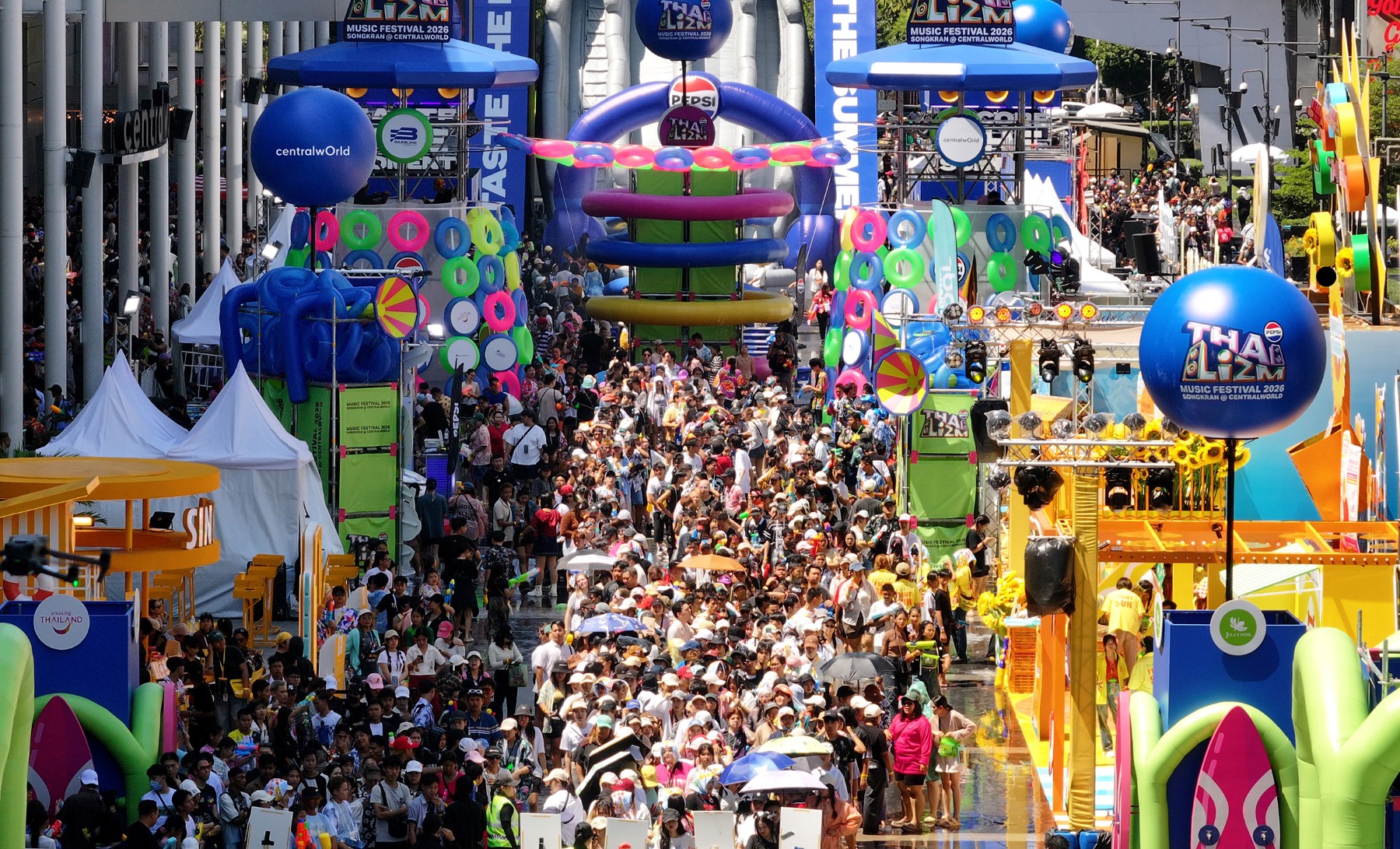 เซ็นทรัลเวิลด์ ผนึกกำลัง บริษัท เบสไลน์ เอ็นเตอร์เทนเมนต์ บริษัทในเครือของ PlanB Media จับมือการท่องเที่ยวแห่งประเทศไทย และบริษัทชั้นนำอื่นๆ จัดเต็มความสนุก กับเทศกาลสงกรานต์สุดยิ่งใหญ่ ‘PEPSI Presents THAI LIZM 2026’ เนรมิตหน้าลานเซ็นทรัลเวิลด์ให้เป็น Summer Beach Club PEPSI Presents THAI LIZM 2026 สงกรานต์ยกหาดสาดคลื่นปาร์ตี้ ความมันส์แบบใหม่ใจกลางกรุงเทพที่จะทำให้คุณ “เปียก แบบ ป๊อปๆ” โดยในวันที่ 13 เม.ย. พบกองทัพศิลปินที่จะมาร่วมสร้างความมันส์ตลอดวันถึง 4 ทุ่ม ได้แก่ WAR WANARAT, THX, BNK48, F.HERO, ลำไย ไทองคำ, GUNNER, YOUNGGU, DIAMOND, BIGSLP, DJ SURABOON และเพิ่มดีกรีความตื่นเต้นกับ PEPSI Giant Slider ซ่าไม่จบ สไลเดอร์ขนาดยักษ์สูงกว่า 12 เมตร ใจกลางเมือง ที่ชวนทุกคนมาสไลด์ มาสาด และเต้นให้สุดในเทศกาลสงกรานต์ที่มันส์ที่สุดของปี