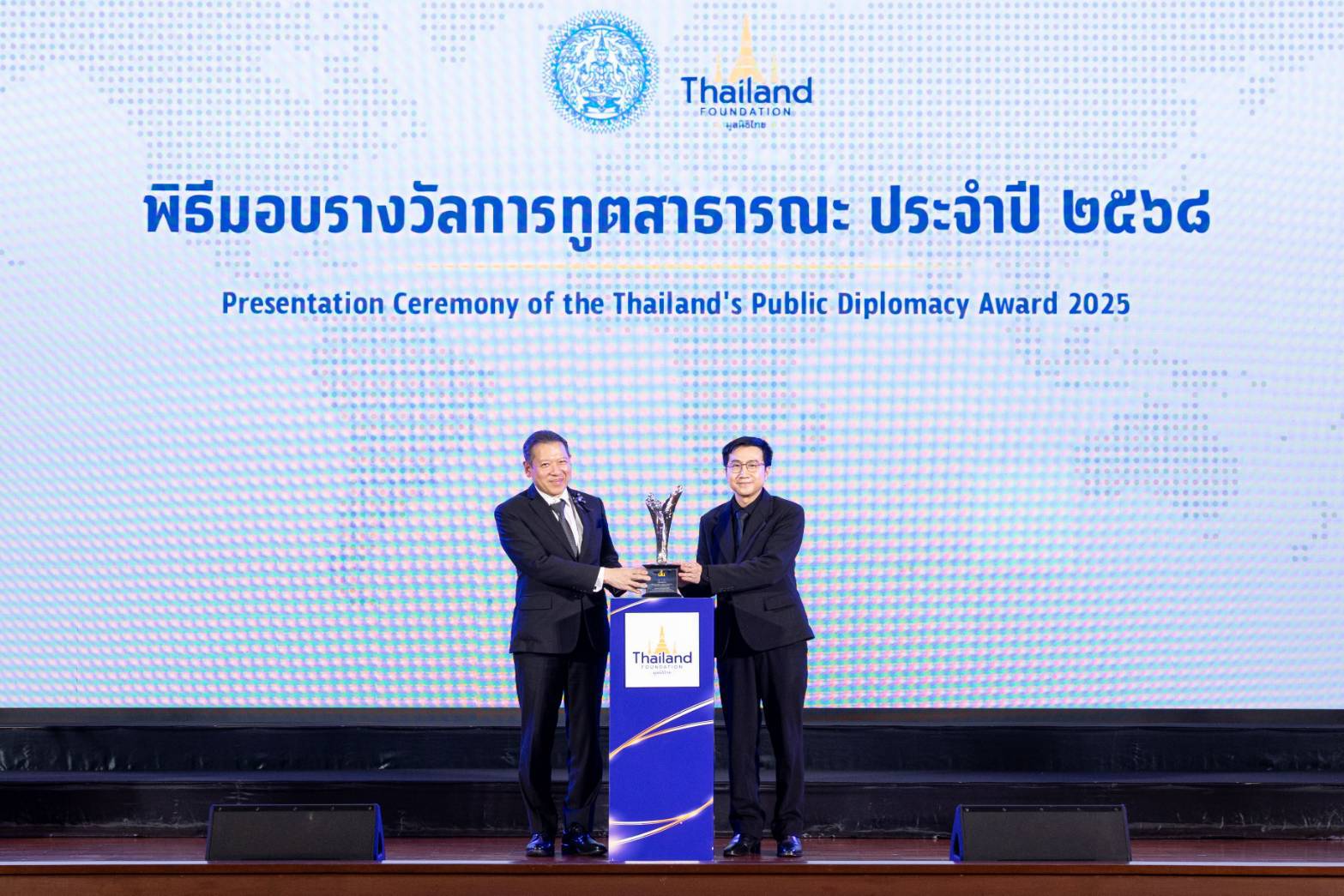 2 ธันวาคม 2568 – กรุงเทพฯ / กระทรวงการต่างประเทศและมูลนิธิไทยจัดพิธีมอบรางวัลการทูตสาธารณะ ประจำปี 2568 (Thailand’s Public Diplomacy Award 2025 – TPDA2025) ณ ห้องวิเทศสโมสร กระทรวงการต่างประเทศ เพื่อยกย่ององค์กรที่มีบทบาทโดดเด่นในการเผยแพร่วัฒนธรรมไทย ถ่ายทอดความคิดสร้างสรรค์ และส่งเสริมภาพลักษณ์ประเทศไทยในระดับสากล ผ่านพลังของ Soft Power ไทย โดยในปีนี้มอบรางวัลแก่ องค์กรผู้ผลิตสื่อบันเทิงแนวหน้าที่ได้รับความนิยมจากผู้ชมทั่วโลก โดยมี นายสีหศักดิ์ พวงเกตุแก้ว รัฐมนตรีว่าการกระทรวงการต่างประเทศ เป็นผู้มอบ คำกล่าวรายงานโดย นายธฤต จรุงวัฒน์ เลขาธิการมูลนิธิไทย ซึ่งกล่าวถึงวัตถุประสงค์ของการมอบรางวัลการทูตสาธารณะ ซึ่งจัดตั้งขึ้นตั้งแต่ปี 2565 เพื่อเชิดชูบุคคลและองค์กรที่สร้างชื่อเสียงให้ประเทศไทยในระดับนานาชาติ เป็นแรงบันดาลใจให้ผู้ประกอบคุณประโยชน์สานต่อภารกิจของตน และสะท้อนว่าประชาชนทุกคนสามารถมีบทบาทในการขับเคลื่อนการทูตสาธารณะของไทยได้
